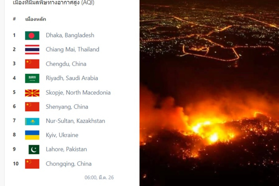 กทม.-ปริมณฑลพ้นเคราะห์ฝุ่นอากาศดี แต่คนเหนือยังอ่วมอรทัย แทบจะอยู่กันไม่ได้แล้ว ค่าฝุ่นวันนี้ขยับพุ่งเกินเกณฑ์ถึง 19 พื้นที่ ติดโซนแดงอันตราย 8 จุด หนักสุดยังเป็นเชียงราย เชียงใหม่ เกินมาตรฐานกว่าเท่าตัว หมอมช.ชี้ไฟป่าดอยสุเทพยังไหม้กันทั้งวันทั้งคืน ถามใจรัฐจะให้ปชช.หายใจกันยังไง กรมควบคุมมลพิษ รายงานสถานการณ์คุณภาพอากาศ ในพื้นที่กรุงเทพฯและปริมณฑล วันที่ 26 มี.ค.63 เวลา 06.00 น. พบว่าคุณภาพอากาศอยู่ในระดับดีถึงดีมาก ค่าฝุ่นไม่เกินเกณฑ์มาตรฐานทุกพื้นที่ ด้านคุณภาพอากาศในพื้นที่ภาคเหนือ คุณภาพอากาศยังคงน่าเป็นห่วง ตรวจพบฝุ่นละออง ขนาดไม่เกิน 2.5 ไมครอน (PM 2.5) ตรวจพบค่าระหว่าง 28 - 216 ไมโครกรัมต่อลูกบาศก์เมตร โดยค่าฝุ่นเกินมาตรฐานจำนวน 19 พื้นที่ อยู่ในระดับมีผลกระทบต่อสุขภาพ (โซนสีแดง) 8 พื้นที่ สูงสุดยังคงเป็นที่ ต.เวียงพางคำ อ.แม่สาย จ.เชียงราย 216 ไมโครกรัมฯ ตามด้วยต.เมืองคอง อ.เชียงดาว จ.เชียงใหม่ 173 ไมโครกรัมฯ ต.จองคำ อ.เมือง จ.แม่ฮ่องสอน 145 ไมโครกรัมฯ ต.เวียง อ.เมือง จ.เชียงราย 118 ไมโครกรัมฯ ต.สุเทพ อ.เมือง จ.เชียงใหม่ 115 ไมโครกรัมฯ ต.ช้างเผือก อ.เมือง จ.เชียงใหม่ 112 ไมโครกรัมฯ ต.ศรีภูมิ อ.เมือง จ.เชียงใหม่ 97 ไมโครกรัมฯ ต.ห้วยโก๋น อ.เฉลิมพระเกียรติ จ.น่าน 92 ไมโครกรัมฯ พื้นที่ค่าฝุ่นอยู่ในระดับเริ่มมีผลกระทบต่อสุขภาพ (โซนสีส้ม) 11 พื้นที่ ได้แก่ ต.พระบาท อ.เมือง จ.ลำปาง, ต.สบป้าด อ.แม่เมาะ จ.ลำปาง, ต.บ้านดง อ.แม่เมาะ จ.ลำปาง, ต.แม่เมาะ อ.แม่เมาะ จ.ลำปาง, ต.ในเวียง อ.เมือง จ.น่าน, ต.นาจักร อ.เมือง จ.แพร่, ต.บ้านต๋อม อ.เมือง จ.พะเยา, ต.แม่ปะ อ.แม่สอด จ.ตาก, ต.ช่างเคิ่ง อ.แม่แจ่ม จ.เชียงใหม่, ประตูท่าแพ อ.เมือง จ.เชียงใหม่, ต.ในเมือง อ.เมือง จ.กำแพงเพชร ขณะที่ www.airvisual.com ซึ่งรายงานคุณภาพอากาศและจัดอันดับเมืองมลพิษ โดยรายงานแบบเรียลไทม์ วันที่ 26 มี.ค.63 เวลา 07.12 น. พบว่าเมืองเชียงใหม่ สภาพอากาศยังเลวร้ายเป็นอันดับ 2 ของโลก ค่าฝุ่นอยู่ที่ 171 US AQI ทั้งนี้ ที่เชียงใหม่ยังคงมีปัญหาหนักเรื่องไฟป่า ซึ่ง นพ.รังสฤษฎ์ เรืองกาญจนวณิชย์ อาจารย์แพทย์โรคหัวใจ ภาควิชาอายุรศาสตร์ คณะแพทยศาสตร์ มหาวิทยาลัยเชียงใหม่ ได้โพสต์ผ่านเฟซบุ๊ก ระบุ “ไฟป่าดอยสุเทพทั้งคืน ไม่แน่ใจว่า กำลังจนท. อาสาสมัคร และอุปกรณ์ต่างๆ เพียงพอหรือไม่ หากไม่เพียงพอ ขอทางจังหวัด หาทางระดมความช่วยเหลือ ทุกภาคส่วนด้วยครับ ขอแจ้งประชาชนให้ทราบว่า ทุกคนจะช่วยกันได้อย่างไร รมควันแบบนี้ต่อไป ไม่ไหวจริงๆครับ (ภาพ วีรเดช ทองสุวรรณ) ….ตกลง ท่านจะให้ ประชาชนหายใจกันอย่างไรครับโปรดแจ้งด้วย” พร้อมระดมหา อาสาสมัคร เฝ้าไฟ ดอยสุเทพ