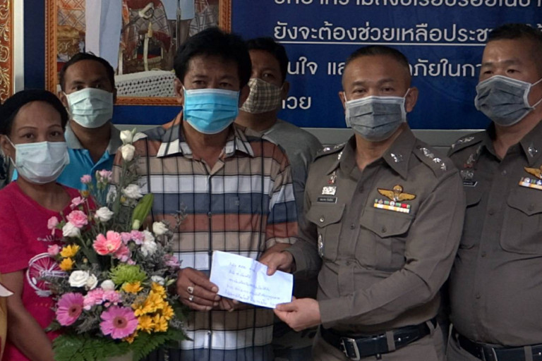 จากกรณี พ.ต.อ.สมมาตร จันทรัตน์ ผกก.สภ.โพธาราม สนธิกำลังเจ้าหน้าที่ตำรวจ สภ.โพธาราม จ.ราชบุรี ระดมไล่ล่าปิดล้อม คนร้ายก่อเหตุใช้ปืนเมาเซอร์จี้ชิงทรัพย์ผู้เสียหายแค่ 3 วันก่อเหตุอุกอาจถึง 7 คดี จนกรรมตามสนองเสียท่าจนมุมพลาดท่าวิ่งตกบ่อน้ำหน้าฮวงซุ้ย เกิดเป็นตะคริวจมน้ำดับ เหตุเกิดเมื่อเวลา 22.30 น. ของวันที่ 24 มี.ค.63 ล่าสุดเมื่อช่วงเช้าวันนี้ (26 มี.ค.) นายสยาม มุกดา กำนัน ต.บ้านเลือก อ.โพธาราม และประธานกรรมการตำรวจ สภ.โพธาราม พร้อมนายกิตติ ศิริสมบูรณ์ กำนัน ต.คลองตาคต อ.โพธาราม และผู้ใหญ่บ้านหมู่ 1 - 10 ต.คลองตาคต ได้นำผู้เสียหายพร้อมประชาชนทั้ง 10 หมู่บ้าน ต.คลองตาคต เข้าขอบคุณ พ.ต.อ.สมมาตร จันทรัตน์ ผกก.สภ.โพธาราม, พ.ต.ท.ธีรพล ว่องพานิช รองผกก.ป.สภ.โพธาราม และเจ้าหน้าที่ตำรวจชุดติดตามจับกุมคนร้าย เนื่องจากคนร้ายมีพฤติกรรมก่อเหตุชนิดอุกอาจหลายคดีและหลายพื้นที่ ทำให้ประชาชนชาวอำเภอโพธาราม ขวัญผวาหวาดกลัว จนไม่กล้าออกจากบ้านเรือน หวั่นเกรงว่าเจ้าหน้าที่ตำรวจจะไม่สามารถจับกุมตัวคนร้ายมาดำเนินคดีได้ นายสยาม มุกดา กำนัน ต.บ้านเลือก และประธานกรรมการตำรวจ สภ.โพธาราม ได้กล่าวว่า ตนรู้สึกขอบคุณ พ.ต.อ.สมมาตร จันทรัตน์ ผกก.สภ.โพธาราม พ.ต.ท.ธีรพล ว่องพานิช รองผกก.ป.สภ.โพธาราม และเจ้าหน้าที่ตำรวจทุกนาย และประชาชนที่ร่วมให้ข้อมูลเบาะแสคนร้าย จนเจ้าหน้าที่ตำรวจ โดยการนำของ ผกก.สภ.โพธาราม สามารถติดตามจับกุมตัวคนร้าย จนปิดคดีอุกฉกรรจ์ได้โดยเร็ว เพราะเนื่องจากคนร้ายไม่มีความเกรงกลัวต่อเจ้าหน้าที่ตำรวจ และลงมือก่อเหตุอุกอาจโดยไม่เลือกสถานที่ แม้มีคนอยู่ภายในบ้านหลายคน หรือมีกล้องวงจรปิด คนร้ายก็ยังกล้าลงมือก่อเหตุ สร้างความตื่นตระหนก หวาดกลัวให้กับชาวบ้าน ซึ่งการที่เจ้าหน้าที่ตำรวจติดตามจับกุมตัวคนร้าย จนสามารถปิดคดีได้โดยเร็ว สร้างความอุนใจให้กับประชาชนที่หวาดกลัวในหลายพื้นที่ ตนจึงขอเป็นตัวแทนประชาชนชาวอำเภอโพธาราม มอบดอกไม้และเงินบำรุงขวัญกำลังใจให้กับเจ้าหน้าที่ตำรวจทุกนายที่ปิดคดีนี้ได้โดยเร็ว ด้าน พ.ต.อ.สมมาตร จันทรัตน์ ผกก.สภ.โพธาราม ได้กล่าวว่า การติดตามจับกุมตัวคนร้ายรายนี้ได้โดยเร็วนั้น เกิดจากความร่วมมือของประชาชนที่ค่อยแจ้งเบาะแสให้กับทางเจ้าหน้าที่ตำรวจ จนไปสู่กระบวนการติดตามจับกุมตัวคนร้ายได้ ซึ่งเจ้าหน้าที่ตำรวจทุกนาย มีหน้าที่รับใช้ประชาชนอยู่แล้ว ดังพระบาทสมเด็จพระเจ้าอยู่หัว พระราชทานพระบรมราโชวาทแก่เจ้าหน้าที่ตำรวจทุกนายในตอนหนึ่งว่า "หน้าที่ของตำรวจนั้น นอกจากจะต้องพิทักษ์ รักษา