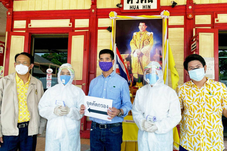 วันที่ 28 มี.ค.63 นายนพพร วุฒิกุล นายกเทศมนตรีเมืองหัวหิน พร้อมด้วย นายมนตรี ชูภู่ รองนายกฯ ได้นำทีมพยาบาลและนักวิชาการ เทศบาลเมืองหัวหิน ร่วมกับ ตำรวจรถไฟหัวหิน ลงพื้นที่คัดกรองผู้โดยสารบริเวณสถานีรถไฟหัวหินซึ่งแต่ละวันมีผู้ใช้บริการจำนวนมาก ตามสั่งการศูนย์บัญชาการป้องกันและแก้ไขปัญหาการแพร่ระบาดโรคติดเชื้อไวรัสโคโรนา 2019 จ.ประจวบคีรีขันธ์ และเพื่อสร้างความมั่นใจให้กับเมืองหัวหิน โดยแบ่งเจ้าหน้าที่เป็น 2 ทีม ทีมละ 2 คน ทำการสแกนวัดไข้ผู้โดยสารขาออก และทีมละ 6 คน ทำการสแกนผู้โดยสารขาเข้าเมืองหัวหินในแต่ละเที่ยวขบวนตลอด 24 ชม.โดยช่วงเช้าที่ผ่านมาได้ทำกรองผู้โดยสาร 100% ไปแล้วกว่า 60 คนและไม่พบอาการผิดปกติแต่อย่างใด และจะดำเนินการอย่างต่อเนื่องจนกว่าจะมีการเปลี่ยนแปลง ทั้งนี้หากทีมพยาบาลและวิชาการตรวจพบผู้โดยสารเข้าข่ายจะดำเนินการกักตัวตามมาตรการสาธารณสุขอย่างเคร่งครัดต่อไป นายธนนท์ พรรพีภาส นายอำเภอหัวหิน กล่าวว่า สำหรับสถานการณ์ล่าสุด จ.ประจวบคีรีขันธ์ มียอดผู้ป่วยติดเชื้อโควิดสะสมรวม 11 ราย รักษาตัวอยู่ใน รพ.พื้นที่ อ.หัวหิน 8  ราย เข้าไปรักษาตัว รพ.ใน กทม. 1 ราย รักษาหายและกลับบ้านแล้ว 2 ราย หลังพบผู้ติดเชื้อใหม่เพิ่มอีก 4 ราย เมื่อวันที่ 27 มี.ค.63 ทำให้มีกระแสในสังคมโซเชียลหัวหิน เรียกร้องให้ทางราชการเปิดไทม์ไลน์ของผู้ติดเชื้อที่เพิ่มเพื่อเป็นแนวทางป้องกันตนเอง โดยเฉพาะหัวหินเป็นเมืองท่องเที่ยว แต่ส่วนตัวยอมรับว่าในฐานะฝ่ายปกครองจะทราบว่ามีผู้ติดเชื้อก่อนที่จังหวัดจะแถลงรายละเอียด นอกจากนั้นตนทราบข้อมูลอื่นๆเท่ากับประชาชนทั่วไป ทำให้การตอบคำถามในเพจโควิด -19 ของฝ่ายปกครองอำเภอไม่สามารถให้รายละเอียดได้ทั้งหมด ขณะที่ประชาชนบางส่วนมีข้ออ้างว่าบางจังหวัดหน่วยงานรัฐสามารถเปิดเผยชื่อและพฤติกรรมก่อนการติดเชื้อ แต่ใน จ.ประจวบฯ หน่วยงานที่เกี่ยวข้องอาจจะมีเทคนิคและวิธีคิดในการทำงานที่แตกต่างกัน ทำให้ล่าสุดในสังคมโซเชียลมีการโพสต์ระบุว่ามีผู้ติดเชื้อเพิ่มในสถานที่ท่องเที่ยวบางแห่งอย่างต่อเนื่อง แต่ยืนยันว่าขณะนี้มีผู้ติดเชื้อสะสมเพียง 11 ราย