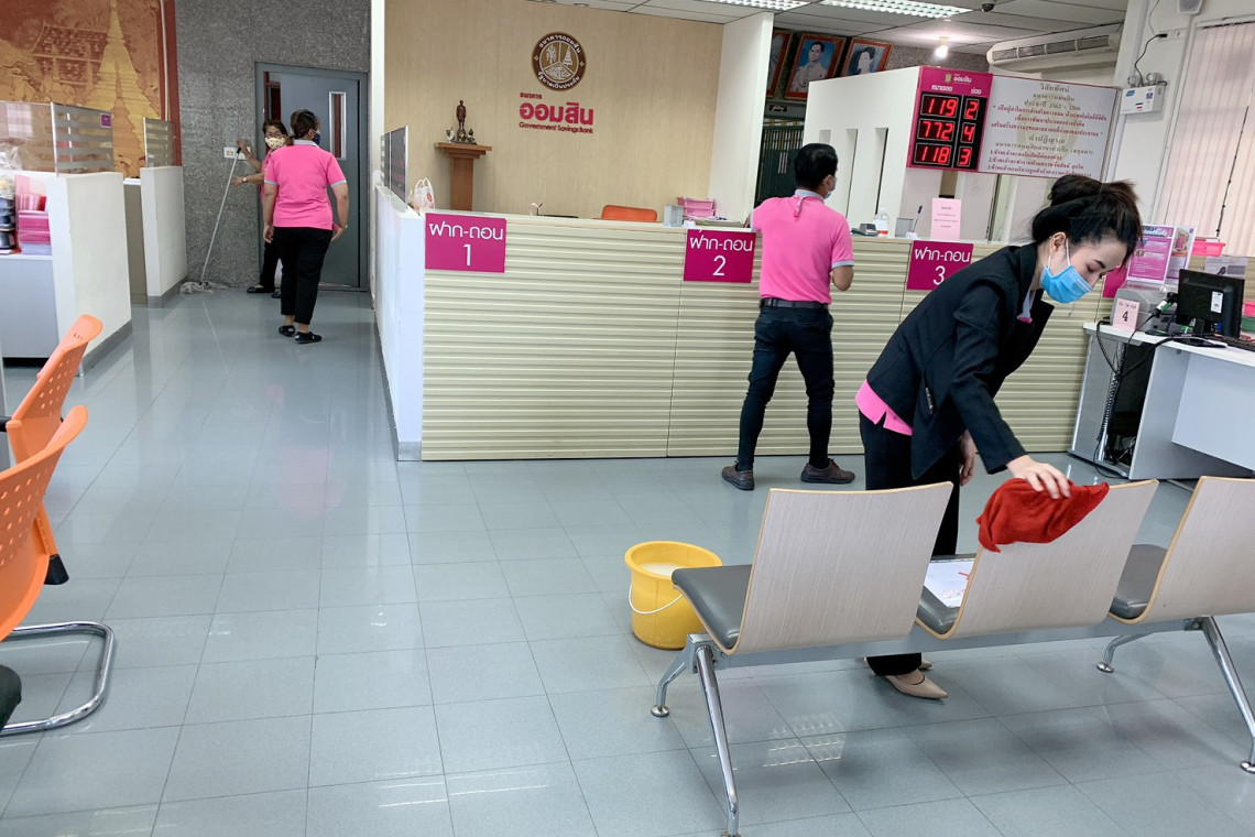 วันที่ 28 มี.ค.63 นางชุติมา อินถา ผู้จัดการธนาคารออมสินสาขาท่าเรือ (อยุธยา) ได้ประสานและขอความร่วมมือกับสำนักงานเทศบาลตำบลท่าเรือโดยมีนายศิลป์ชัย บุญเจริญกิจ นายกเทศมนตรี ได้มอบหมาย ให้กองการสาธารณะและสิ่งแวดล้อม ส่งเจ้าหน้าที่มาทำการฉีดพ่นยาเพื่อฆ่าเชื้อโรคไวรัสโควิค-19 ตามมาตรการป้องกันการแพร่กระจายของเชื้อไวรัส ของสาขา ตามนโยบายผู้บริหารธนาคารออมสิน ได้กำหนดการป้องกัน ตั้งแต่ตรวจวัดอุณหภูมิ เจลล้างมือและแอลกอฮอล์ล้างมือ ตลอดจนการสวมหน้ากากอนามัย ของลูกค้าและพนักงานทุกคนก่อนเข้าสาขา และระหว่างวันทุก 1 ชั่วโมง จะให้แม่บ้านทำความสะอาดโดยการใช้น้ำยาฆ่าเชื้อ ซึ่งรวมถึงพนักงาน โดยเพิ่มการสวมถุงมือยางกับพนักงานที่ทำหน้าที่รับฝากเงินเนื่องจากการเข้าใช้บริการของลูกค้าเป็นจำนวนมาก ทางสาขาจึงทำความสะอาดพื้นที่ สนง.ทันที ทุกวันที่ปิดทำงานเพื่อsaemพนักงานลูกจ้างธนาคารออมสินและลูกค้าที่มาใช้บริการและเป็นการรับผิดชอบต่อสังคม