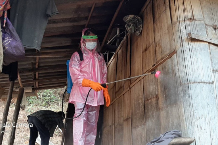 ทางด้านอำเภอสบเมย นายเฉลิม ซอนคำ นายกอบต.กองก๋อย อ.สบเมย จ.แม่ฮ่องสอน พร้อมทีมงาน เข้าปฏิบัติงานติดตามดูแลและพร้อมเข้าพ่นน้ำยาทำความสะอาดฆ่าเชื้อในบริเวณบ้านของ เคสที่กักตัวบ้านแม่แพน้อย จำนวน 2 ราย การปฏิบัติงานเป็นไปด้วยความเรียบร้อยและ เคสให้ความร่วมมือในการปฏิบัติงานเป็นอย่างดี