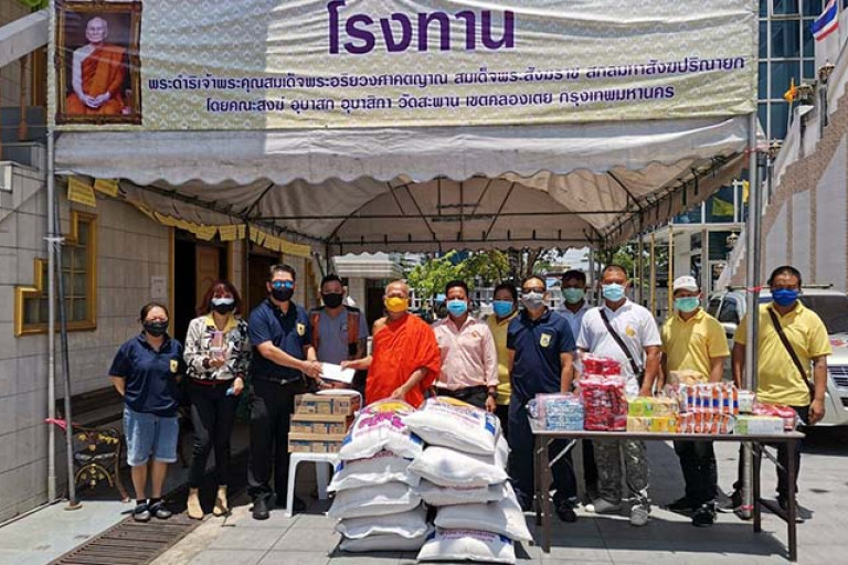 วัดสะพาน เขตคลองเตย ร่วมกับประธาน อปพร.ทีมงานอาสาสมัครกระต่ายคลองเตย จัดตั้งโรงทานแจกจ่ายข้าวสารอาหารแห้ง อาหารปรุงสำเร็จ ให้กับประชาชนผ่านวิกฤตการแพร่ระบาดเชื้อไวรัสโควิด-19ไปด้วยกัน วันที่ 29 มี.ค.63 พระพิศาลธรรมานุสิษฐ เจ้าอาวาสวัดสะพาน เขตคลองเตย จ.กทม. นายสุชัย พงษ์เพียรชอบ ประธาน อปพร. เขตคลองเตย พร้อมด้วยทีมงานอาสาสมัครกระต่ายคลองเตยร่วมใจกันจัดตั้งโรงทาน ต้านภัยโควิด-19 โดยให้ตระหนักและใสใจในการรักษาสุขอนามัยแจกอาหารฟรีทั้งหน่วยงานราชการและประชาชนทั่วไปในชุมชนคลองเตย และปฏิบัติตามมาตรการป้องกันการแพร่ระบาด กินร้อนช้อนตนเอง ล้างมือ สวมหน้ากากอนามัย พระพิศาลธรรมานุสิษฐ กล่าวว่า สำหรับโครงการนี้ทางอาตมาได้ร่วมกับโยมสุชัย ต้องการช่วยเหลือประชาชนชาวชุมชุนคลองเตยที่เดือดร้อนจากการแพร่ระบาดของเชื้อไวรัสโควิด-19 ทำให้บางรายไม่สามารถประกอบอาชีพได้"ทางเจ้าพระคุณ สมเด็จพระอริยวงศาคตญาณ สมเด็จพระสังฆราช สกลมหาสังฆปริณายก ได้มีโครงการให้วัดทุกวัดตั้งโรงทานขึ้นเพื่อบรรเทาความทุกข์แก่ญาติโยม ทางอาตมาพร้อมคณะกรรมการวัดและอาสาสมัครกระต่ายคลองเตย จึงได้จัดเตรียมอาหาร พร้อมทั้งข้าวสวย และขนม แจกจ่ายให้กับประชาชนซึ่งจะแจกอาหารตั้งแต่เวลา 10.00 น. ไปจนถึงเวลา 12.00 น. ตั้งแต่วันที่ 25 มี.ค. ไปจนถึงวันที่ 24 เม.ย.นี้ ด้านนายสุชัย พงษ์เพียรชอบ ประธาน อปพร.เขตคลองเตย กว่าว่าการจัดตั้งโรงทาน ช่วยเหลือผู้ประสบความยากลำบากในสถานการณ์โรคระบาดเป็นความร่วมมือกับของประชาชนในการสนับสนุนจากภาครัฐ ภาคเอกชนและภาคประชาสังคมในชุมชนประสานภารกิจร่วมกับทุกหน่วยงานและบุคลากรทางการแพทย์และการสาธารณสุข ซึ่งมีประจำอยู่ในแต่ละพื้นที่ ในการปฏิบัติเกี่ยวกับการจัดตั้งโรงทาน และการแจกจ่าย เสบียงอาหาร เครื่อง อุปโภคบริโภค น้ำดื่มให้เป็นไปตามหลักสุขอนามัย โดยต้องไม่มีการจัดพิธีการ พิธีกรรม กิจกรรม หรือการบริการจัดการใดๆ ที่ต้องให้บุคคลจำนวนมากมารวมตัวกัน กับทั้งให้ปฏิบัติตามคำสั่ง มาตรการ และคำแนะนำของทางราชการอย่างเคร่งครัด อีกอย่างเจ้าหน้าที่ อปพร. เขตคลองเตยและทีมงานอาสาสมัครกระต่ายคลองเตย ได้ดำเนินการจัดส่งกำลังสมาชิกเข้าร่วมในการบรรจุอาหารที่ปรุงสำเร็จ และอาหารแห้งที่วัดสะพานจำนวน 250 ชุดทุกวันตั้งแต่เวลา 12.00 น.ของทุกวันดำเนินการให้สมาชิกลงพื้นที่ชุมชน ล๊อก 4-5-6 นำอาหารและถุงยังชีพไปมอบให้กับผู้ป่วยติดเตียงอีก เพื่อเป็นการบรรเทาความเดือดร้อนของประชาชน และขอกราบขอบคุณ ท่านเจ้าอาวาสวัดสะพาน ที่มี