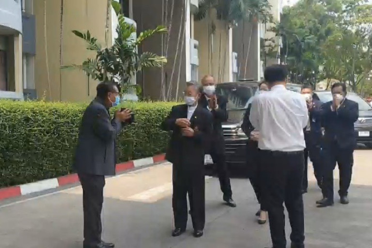 เมื่อวันที่ 30 มี.ค. เวลา 09.30 น. ที่มธ.รังสิต นายชวน หลีกภัย ประธานสภาผู้แทนราษฎร พร้อมด้วยนายศุภชัย สมเจริญ รองประธานวุฒิสภาคนที่ 2 และ พล.อ. เลิศรัตน์ รัตนวานิช สมาชิกวุฒิสภา ในฐานะ ประธานคณะกรรมาธิการการปกครองท้องถิ่น วุฒิสภา ได้เยี่ยมชมและให้กำลังใจบุคลากรทางการแพทย์ ของโรงพยาบาลสนามธรรมศาสตร์ ศูนย์รังสิต ที่มีขนาด 308 เตียง พร้อมมอบเงินสนับสนุนช่วยเหลือเพื่อจัดซื้ออุปกรณ์ทางการแพทย์ ทั้งนี้ นายสุรพล นิติไกรพจน์ ประธานกรรมการบริหารโรงพยาบาล และ นพ.ดิลก ภิยโยทัย คณบดีคณะแพทย์ศาสตร์ มหาวิทยาลัยธรรมศาสตร์ กล่าวรายงานว่า ทางโรงพยาบาลสามารถรองรับผู้ป่วยติดเชื้อโควิด-19 และกั้นพื้นที่บางชั้นของโรงพยาบาล ใช้เป็นพื้นที่กักตัวบุคลากรทางการแพทย์ที่ใกล้ชิดกับผู้ติดเชื้อโควิด-19 และมีความเสี่ยงสูง โดยเตรียมสถานที่ไว้รองรับแพทย์ที่ติดเชื้อและได้รับการรักษาจนหายดีระดับหนึ่ง เพื่อมาพักฟื้นได้ 300 เตียง และขณะนี้มีผู้ ที่มีผลการตรวจเป็นบวก เข้ากักตัวแล้ว 7 คน สำหรับระบบในการตรวจวินิจฉัยโรคให้กับผู้ป่วยนั้น นอกจากจะมีแพทย์ผู้เชี่ยวชาญแล้ว ยังมีระบบภาพกล้องวงจรปิดจากห้องผู้ป่วย เพื่อดูอาการอย่างใกล้ชิด และหลีกเลี่ยงการติดต่อกันระหว่างเจ้าหน้าที่ผู้ปฏิบัติงานกับผู้ป่วยให้มากที่สุด ทั้งนี้นายชวน ได้รวบรวมเงินจากทีมงานมาบริจาค 100,000 บาท ให้กับโรงพยาบาลธรรมศาสตร์เฉลิมพระเกียรติ และอีก 4 โรงพยาบาลคือโรงพยาบาลศิริราช โรงพยาบาลรามาธิบดี และโรงพยาบาล จุฬาลงกรณ์ ขณะที่ นายศุภชัยและพล.อ.เลิศรัตน์ ได้รวบรวมเงินจาก ส.ว.มาบริจาคจำนวน 850,000 บาท พร้อมทั้งเขียนข้อความ ให้กำลังใจ กับบุคลากรทางการแพทย์ด้วย