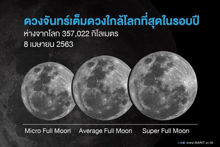 สถาบันวิจัยดาราศาสตร์แห่งชาติ Fan Page โพสต์ระบุ “8 เมษายน 2563 ชวนจับตา #SuperFullMoon #ดวงจันทร์เต็มดวงใกล้โลกที่สุดในรอบปี