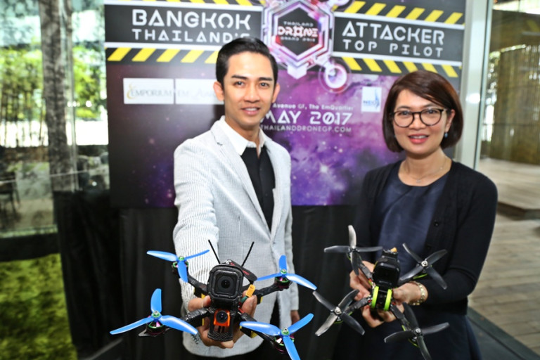 นางสาวบุษยา ประกอบทอง ผู้จัดการทั่วไป บริษัท เอ็น.ซี.ซี.เอ็กซิบิชั่น ออกาไนเซอร์ จำกัด ในฐานะผู้ จัดงาน Thailand Drone Grand Prix 2017: "Bangkok Attacker" Thailand's Top Pilot หรือ การแข่งขันโดรนชิงจ้าวความเร็วทางอากาศ อย่างเป็นทางการครั้ งแรกในประเทศไทย พร้อมด้วย นายมนาเทศ อันนวัฒน์ รองกรรมการผู้จัดการ ดิ เอ็มโพเรี่ยม กรุ๊ป และผู้บริหารศูนย์การค้า ดิเอ็มควอเทียร์ ในฐานะผู้สนับสนุนการจัดงาน เนรมิตพื้นที่ ควอเทียร์ เอเวนิว ชั้น G ศูนย์การสินค้า ดิ เอ็มควอเทียร์ เป็นสนามแข่งประลองความเร็ว ในรูปแบบ Night Racing บนสนาม LED Track ในวันอาทิตย์ที่ 7 พฤษภาคม 2560 ตั้งแต่เวลา 10.00น. - 20.00น. นอกจากนี้พบกับสุดยอดกูรูด้านการถ่ายภาพทางอากาศที่จะมาเผยเทคนิคการถ่ายภาพด้วยโดรน พร้อมสัมมนาและWorkshop หัวข้อ Innovator VS Inventor สุดยอดโปรแกรมเมอร์พบสุดยอดนักพัฒนาโดรน ดำเนินรายการโดย ดีเจพีเค - ปิยะวัฒน์ เข็มเพชร นักแสดงที่มีความหลงใหลในกีฬาโดรนและตื่นตาตื่นใจกับการแสดงการบินผาดโผนจากนักบินเจ้าเวหา Savage Team FPV รวมถึงการแสดงนวัตกรรมโดรนจากบริษัทชั้นนำ อาทิ จาก DJI Phantom Thailand , Sky VIV , RTB Tecnology , DGI Production และ HiveGround .. สนใจติดตามรายละเอียดเพิ่มเติมได้ที่ http://www.thailanddronegp.com / และ http://www.facebook.com/Thaila nddronegrandprix/ - ฝากข่าวประชาสัมพันธ์ได้ที่ : suppaluck.51@gmail.com