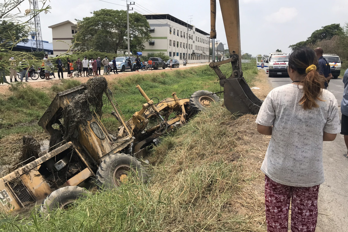 ที่เกิดเหตุภายในคลองแอนส่งน้ำ3-4 ซึ่งมีความกว้างประมาณ 20 เมตร น้ำลึกประมาณ 1.20 เมตร พบรถเกรดเดอร์ยี่ห้อแคตเตอร์พิลล่าร์ สีเหลืองซึ่งเป็นของบริษัทเอกชน พลิกตะแคงอยู่ในคลองส่งน้ำ ริมถนนพบผู้ได้รับบาดเจ็บ 1 รายเป็นผู้ขับขี่ ซึ่งเป็นชายไทยอายุประมาณ 60-70 ปี มีอาการปวดหลังและขาเนื้อตัวเปลื้อนโคลน เจ้าหน้าที่กองช่าง อบต.คลองสามได้พยุงขึ้นรถก่อนนำไปส่งโรงพยาบาล ภายในคลองส่งน้ำยังพบผู้เสียชีวิตอีก 1 ราย ซึ่งนั่งมากับรถฝั่งซ้าย ถูกรถเกรดเดอร์ทับจนร่างจมอยู่ภายในดินโคลน ในเวลาต่อมาได้นำรถแบ๊คโฮรมาทำการยกรถเกรดเดอร์ขึ้นเพื่อจะนำร่างผู้เสียชีวิตขึ้นแต่ยังไม่สามารถนำขึ้นได้ ต้องใช้เวลานานกว่า 1 ชม.จึงสามารถนำร่างผู้เสียชีวิตขึ้นมาจากน้ำได้ทราบชื่อนายมานพ กาศเกษม อายุ 40 ปี อยู่บ้านเลที่ 78/3 หมู่ 2 ต.ห้วยไร่ อ.เด่นชัย จ.แพร่