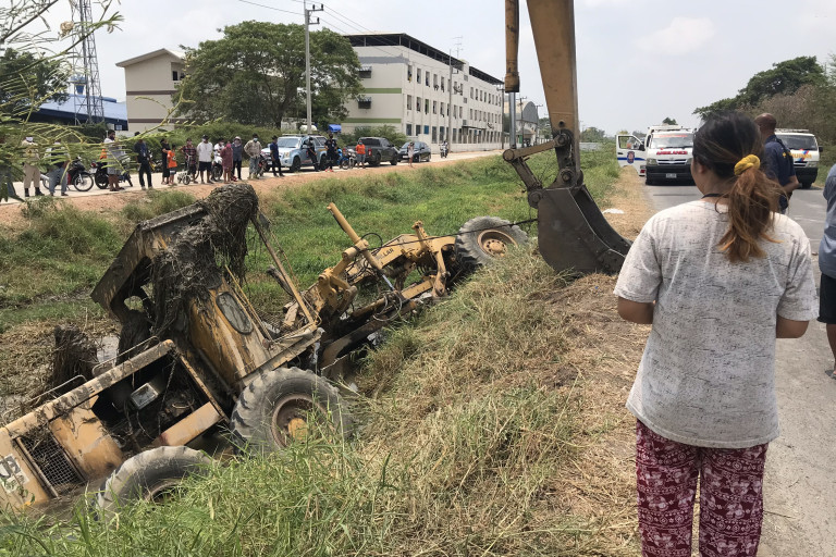 เมื่อเวลา 10.30 น. วันที่ 8 เม.ย.63 ร.ต.ท.ภีมวัจน์ จิต์สงวน ร้อยเวรสอบสวน สภ.คลองหลวง จ.ปทุมธานี ได้ร้บแจ้งเกิดเหตุรถเกรดเดอร์ตกคลองทำให้มีผู้เสียชีวิต 1 ราย และบาดเจ็บ 1 ราย เหตุเกิดบริเวณถนนเลียบคลองแอน 3-4 ต.คลองสาม อ.คลองหลวง จ.ปทุมธานี หลังรับแจ้งจึงเดินทางไปตรวจสอบที่เกิดเหตุพร้อมประสานเจ้าหน้าที่อาสามูลนิธิปอเต็กตึ้งพร้อมทีมประดาน้ำเข้าตรวจสอบ