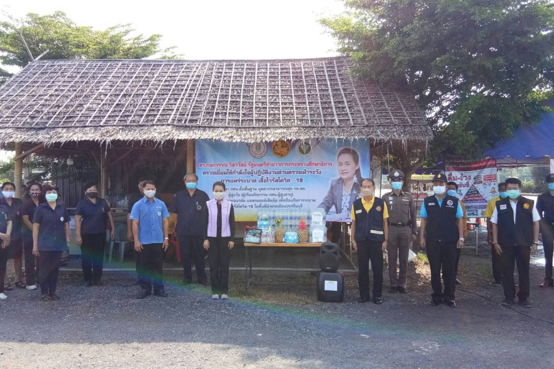 วันเสาร์ที่ 11 เมษายน 2563 ที่ด่านตรวจจุดสกัดตลาดประชารัฐโคกไม้ลาย อ.เมือง ปราจีนบุรี  ดร.กนกวรรณ วิลาวัลย์ รมช.ศธ. ลงพื้นที่ตรวจเยี่ยมให้กำลังใจและมอบเครื่องอุปโภค,บริโภค, หน้ากาก,แอลกอฮอล์เจล ให้เจ้าหน้าที่ปฏิบัติหน้าที่ประจำด่านตรวจฯ