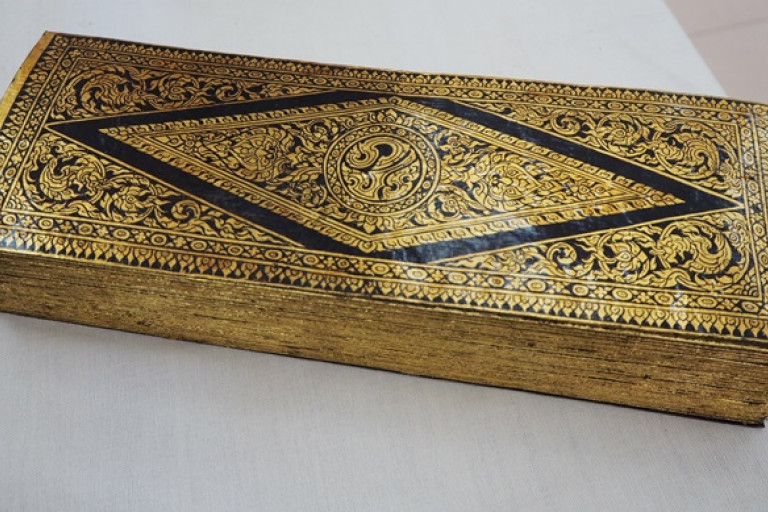 ช่างสิบหมู่ร่วมกับศิลปาชีพเกาะเกิด-สีบัวทอง จัดสร้างสมุดข่อยปาฏิโมกข์ หนึ่งในเครื่องสังเค็ดงานพระราชพิธีถวายพระเพลิงพระบรมศพ ร.9 ใช้ต้นแบบวัดบวรฯ เขียนอักษรขอมบาลี