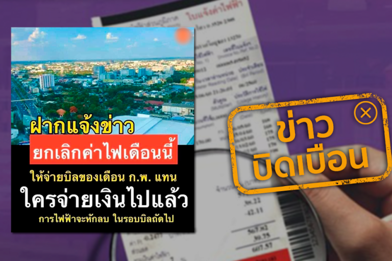 Anti-Fake News Center Thailand ศูนย์ต่อต้านข่าวปลอม ประเทศไทย เตือนกรณี ตามที่มีข่าวปรากฏตามสื่อต่างๆ เกี่ยวกับประเด็นเรื่อง ยกเลิกบิลค่าไฟเดือนนี้ ให้จ่ายบิลค่าไฟเดือน ก.พ. แทน ทางศูนย์ต่อต้านข่าวปลอมได้ดำเนินการตรวจสอบข้อเท็จจริงโดย การไฟฟ้านครหลวง พบว่าประเด็นดังกล่าวนั้น เป็นข้อมูลบิดเบือน