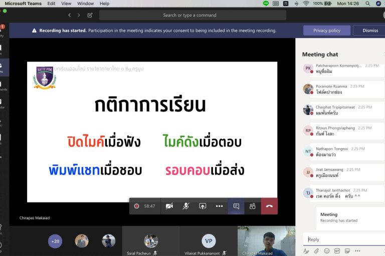อาจารย์ประวิตย์ ศรีหนองหว้า รองผู้อำนวยการฝ่ายวิชาการ กล่าวเพิ่มเติมว่า ก่อนสถานการณ์โควิด-19 โรงเรียนได้อบรมการเขียนแผนการสอนผ่านคอร์ส iTunes U กับครูทุกคน ที่สำคัญเรามีครูที่เป็น ADE (Apple Distinguished Educator) ผ่านการอบรมด้านศาสตร์การสอนอย่างเข้มข้น ช่วยกันแชร์องค์ความรู้ เมื่อโรงเรียนต้องเลื่อนการเปิดเทอม การสอนแบบออนไลน์จะเข้ามาแทนที่ทันทีและมีบทบาทสำคัญ การเตรียมครูให้มีความพร้อมการสอนเด็ก เป็นสิ่งที่ทางโรงเรียนตระหนักและเร่งดำเนินการในช่วงปิดเทอม ทางโรงเรียนได้จัดการ Demo สอนระหว่างครูด้วยกันผ่าน “Microsoft Teams” สลับบทบาททั้งครูและนักเรียนผ่าน “Video Conference” ครูจะมองเห็นจุดเด่น ชี้ข้อบกพร่อง ปรับแก้ไข ในขณะทดลอง Demo การสอนก่อนเข้าสู่การเรียนออนไลน์จริง