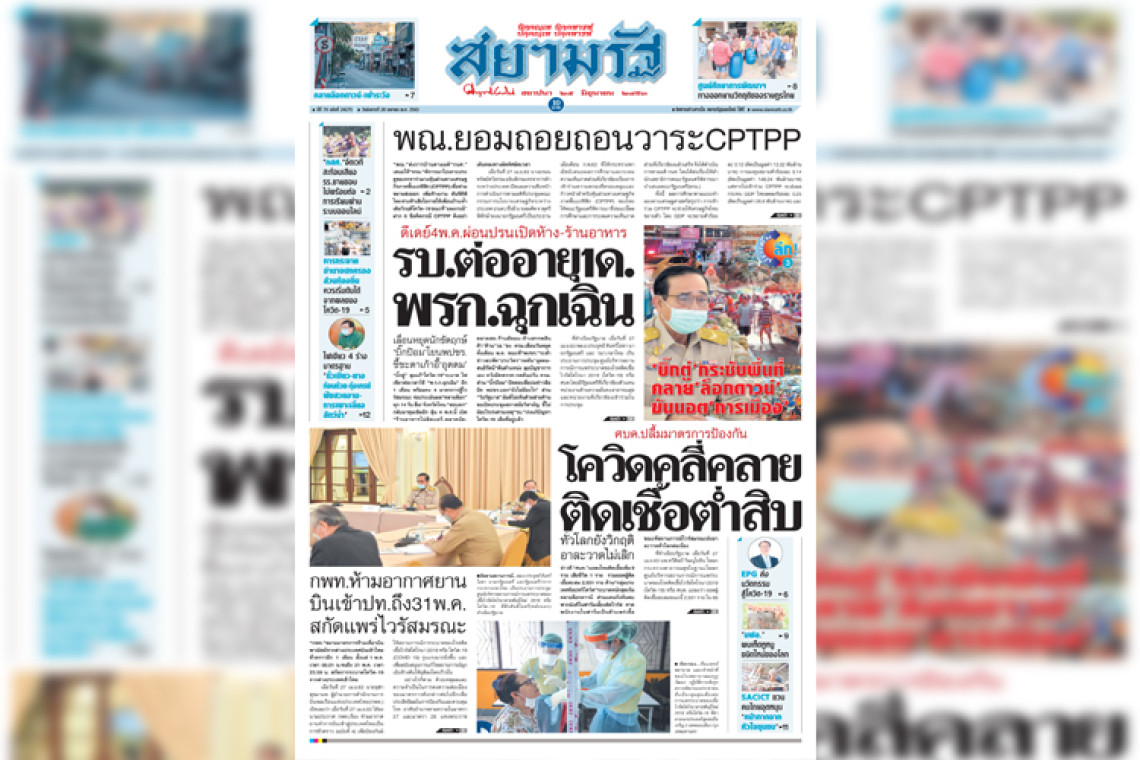 หน้า 1 หนังสือพิมพ์สยามรัฐรายวัน ฉบับวันอังคาร ที่ 28 เม.ย. พ.ศ.2563