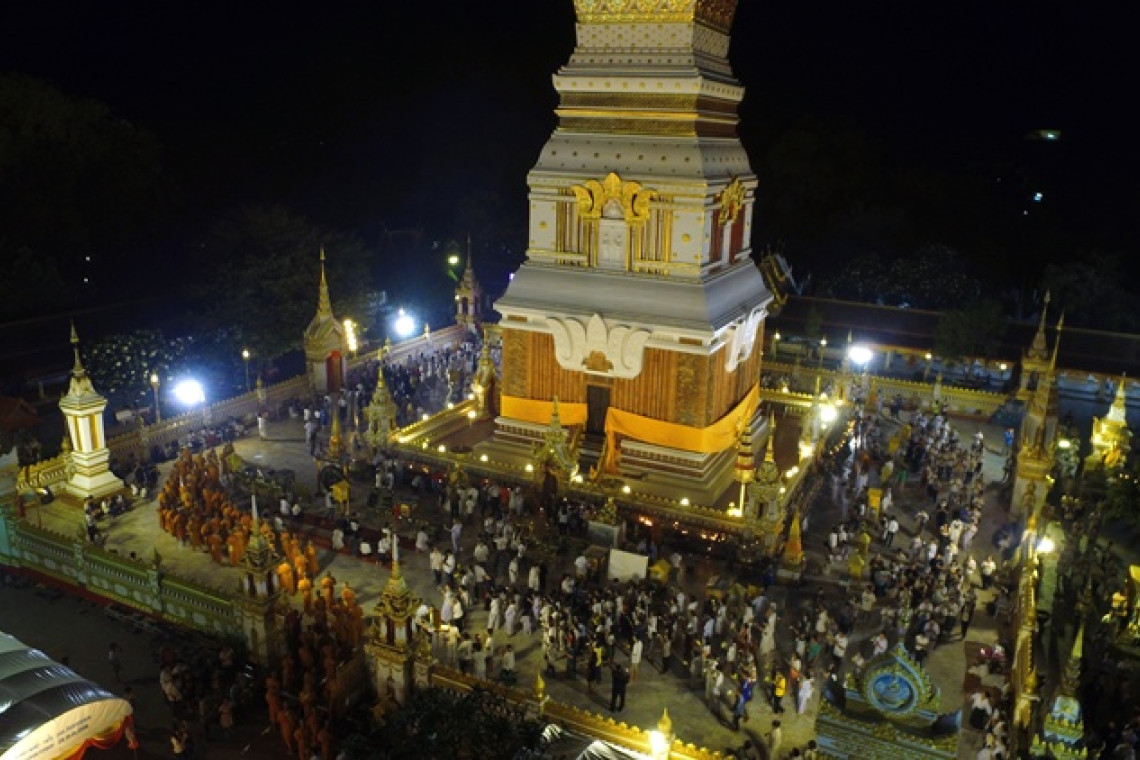 เมื่อเวลา 18.00 น.วันที่ 10 พ.ค.ผู้สื่อข่าวรายงานว่า ที่วัดพระธาตุพนมวรมหาวิหาร อ.ธาตุพนม จ.นครพนม พระเทพวรมุนี เจ้าคณะจังหวัดนครพนม เจ้าอาวาสวัดพระธาตุพนมวรมหาวิหาร เป็นประธานฝ่ายสงฆ์ พร้อมด้วย นายสมชาย วิทย์ดำรงค์ ผู้ว่าราชการจังหวัดนครพนม นำพุทธศาสนิกชน ข้าราชการ ประชาชน นักท่องเที่ยว ทั้งชาวไทย ชาวลาว ประกอบพิธีถวายเครื่องสักการบูชา และเวียนเทียน รอบองค์พระธาตุพนม สิ่งศักดิ์สิทธิ์คู่บ้านคู่เมือง เนื่องในวันวิสาขบูชา ซึ่งเป็นที่เคารพนับถือของพุทธศาสนิกชน ทั้งชาวไทยและชาวต่างชาติ โดยภายในองค์พระธาตุ เป็นที่บรรจุพระอุรังคธาตุ หรือกระดูกส่วนหน้าอกของพระพุทธเจ้า โดยในช่วงสัปดาห์วิสาขบูชา ทางจังหวัดนครพนม ได้ร่วมกับ อำเภอธาตุพนม จัดกิจกรรมส่งเสริมพระพุทธศาสนา สร้างจิตสำนึกให้ประชาชน ร่วมกันอนุรักษ์ประเพณีวัฒนธรรมท้องถิ่น และรักษาศีลธรรม อันดีงาม ลดปัญหา อีกทั้งเป็นการการเผยแพร่ประชาสัมพันธ์ส่งเสริมการท่องเที่ยว ซึ่งตลอดทั้งวันที่ผ่านมาได้มีประชาชน นักท่องเที่ยว เดินทางมา ทำบุญกราบไหว้บูชา องค์พระธาตุพนม รวมถึงวัดที่ตั้งพระธาตุศักดิ์สิทธิ์ ตามอำเภอต่างๆ กันคึกคัก