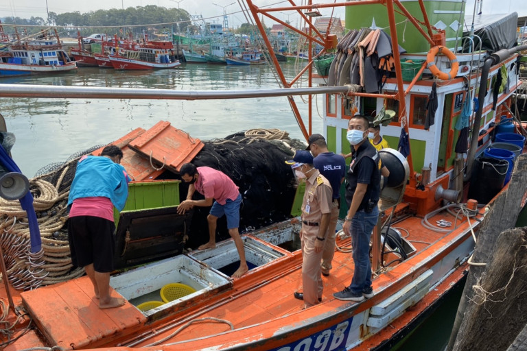โดยเบื้องต้นพบเรือดังกล่าวมีนายสุขสันต์ ภาคสุข เป็นผู้ควบคุมเรือ และมีลูกเรือรวม 12 คน อีกทั้งพบสัตว์น้ำ 300 กิโลกรัม พร้อมอุปกรณ์ในการจับสัตว์น้ำจึงได้ทำการจับกุม พร้อมแจ้งข้อหาร่วมกันใช้เครื่องมือทำการประมง เครื่องมืออวนล้อมจับที่มีสายมาน ทำการประมงในที่จับสัตว์เขตทะเลชายฝั่ง ก่อนนำตัวส่ง พงส.สภ.เมืองพัทยา เพื่อดำเนินการตามกฎหมายต่อไป
