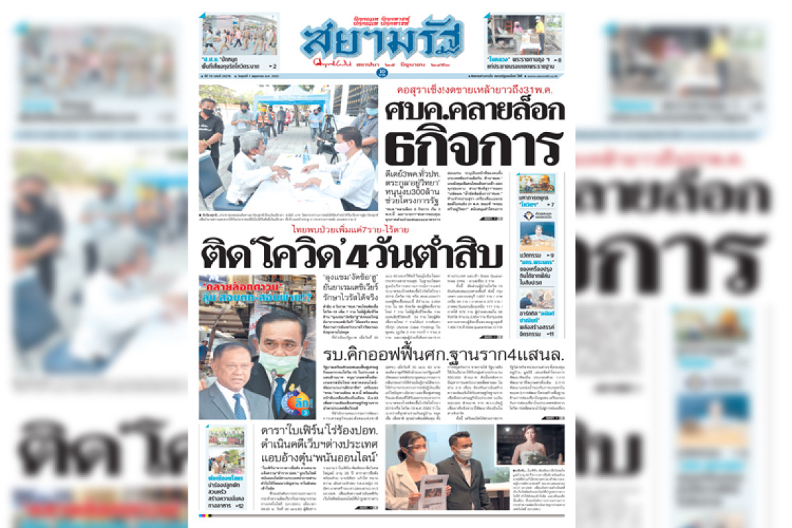 หน้า 1 หนังสือพิมพ์สยามรัฐรายวัน ฉบับวันศุกร์ ที่ 1 พ.ค. พ.ศ.2563