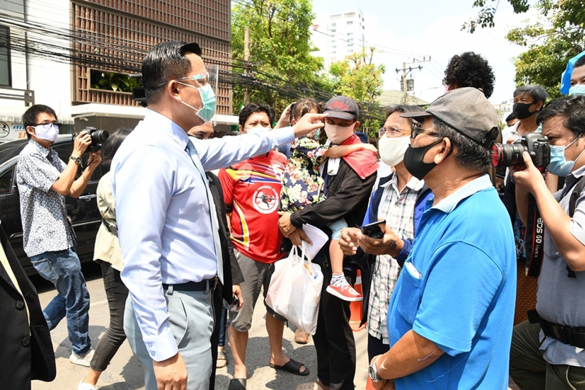 ผู้สื่อข่าวรายงานว่า วันนี้ (1 พ.ค.2563) บรรยากาศด้านหน้าประตู 4 กระทรวงการคลัง ซึ่งจุดตั้งโต๊ะรับเรื่องร้องเรียนปัญหาการรับเงินเยียวยา 5,000 บาทของผู้ลงทะเบียนในระบบเราไม่ทิ้งกัน มีประชาชนมาเข้าคิวรับบัตรติดต่อเจ้าหน้าที่ โดยรายแรกมาตั้งแต่เวลา 05.15 น จนกระทั่วเวลา 8.30 น. เจ้าหน้าที่เริ่มแจกบัตรคิวที่ได้จัดเตรียมไว้รวมทั้งสิ้น 400 ใบ และบัตรคิวได้หมดตั้งแต่ช่วงเช้า จากนั้นได้เพิ่มบัตรคิวเพิ่มอีกกว่า 200 ใบ ซึ่งก็หมดในเวลาไม่นาน โดยคาดว่าตลอดทั้งวันจะมีประชาชนมายื่นร้องทุกข์ไม่ต่ำ 1,200 คน ทั้งนี้ในวันที่ 4 พ.ค. กระทรวงการคลังจะปิดโต๊ะรับเรื่องร้องเรียน 1 วัน เนื่องจากเป็นวันหยุดราชการเนื่องในวันฉัตรมงคล กระทรวงการคลังจึงขอความร่วมมือผู้ลงทะเบียนฯ และในวันที่ 5 พ.ค. 63 จะทำการเปิดโต๊ะอีกครั้ง ตั้งแต่เวลา 8.30-16.40 น.