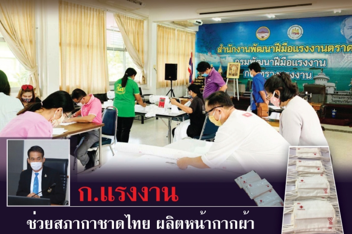 เมื่อวันที่ 3 พ.ค.63 นายธวัช เบญจาทิกุล อธิบดีกรมพัฒนาฝีมือแรงงาน (กพร.) กระทรวงแรงงาน เปิดเผยว่า กระทรวงแรงงาน ร่วมกับสภากาชาดไทย ผลิตหน้ากากผ้า จำนวน 100,000 อัน เพื่อนำไปมอบแก่ประชาชนป้องกันการแพร่ระบาดของเชื้อไวรัสโควิด – 19 โดยสภากาชาดไทย ได้มอบผ้าสาลูจำนวน 67 ม้วน ให้กรมพัฒนาฝีมือแรงงาน ซึ่งมีหน่วยงานในสังกัดตั้งอยู่ในภูมิภาค มีความพร้อมทั้งเครื่องมือ อุปกรณ์ จักรเย็บผ้าและบุคลากร รวมถึงมีเครือข่ายการพัฒนาฝีมือแรงงานกระจายอยู่ทั่วประเทศ ดังนั้น กพร.จึงจัดสรรผ้าสาลูให้กับหน่วยงานในสังกัดที่ตั้งอยู่ภูมิภาคเป็นผู้ดำเนินการตัดเย็บ กำหนดส่งมอบหน้ากากผ้าให้แก่สภากาชาดไทยปลายเดือนเมษายน 2563