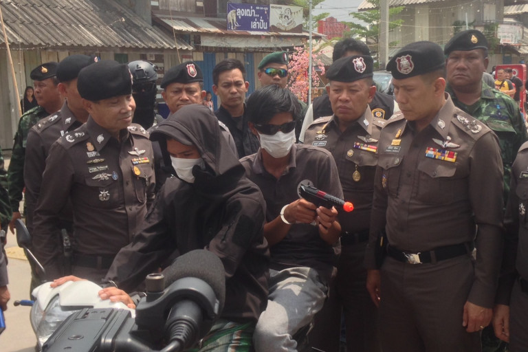 วันที่ 12 พ.ค.60 ที่ สภ.บางพลี พลตำรวจเอกเฉลิมเกียรติ ศรีวรขาน รองผู้บัญชาการตำรวจแห่งชาติ ปป.1 พลตำรวจโทชาญเทพ เสสะเวช ผู้บัญชาการตำรวจภูธรภาค 1 พลตำรวจตรีธนายุตม์ วุฒิจรัสธำรงค์ รองผู้บัญชาการตำรวจภูธรภาค1 ร่วมแถลงข่าวจับกุม นายวีรพล หรือแบงค์ นายมานะ หรือต่อ มุ่งเอื้อมกลาง นายทศพลหรือบังรอน หรือรอน จรกา นายกฤษดา หรือป้อม เจนจบและ นายสิทธิศักดิ์ หรือม่อน ชาภูมี ผู้ต้องหายิงเรือโทชิดชัย จงเจริญ และผู้บาดเจ็บ จำนวน 3 ราย ที่ร้านเดอะชีค บริเวณหน้าร้าน “ เดอะชีค ” ภายในตลาดเรือบิน ต.บางปลา อ.บางพลี จ.สมุทรปราการ ภ.จว.สมุทรปราการ พลตำรวจโทชาญเทพ กล่าวว่า ตามนโยบายรัฐบาลในการปราบปรามอาชญากรรมและผู้มีอิทธิพล สำนักงานตำรวจแห่งชาติ โดยพลตำรวจเอกจักรทิพย์ ชัยจินดา ผู้บัญชาการตำรวจแห่งชาติ ,พลตำรวจเอกเฉลิมเกียรติ ศรีวรขาน รองผู้บัญชาการตำรวจแห่งชาติ , พลตำรวจโทชัยวัฒน์ เกตุวรชัย ผู้ช่วยผู้บัญชาการตำรวจแห่งชาติดำเนินการเร่งรัดติดตาตับกุมตัวผู้ต้องหา โดยตำรวจภูธรภาค 1 ภายใต้การอำนวยการของ พลตำรวจโท ชาญเทพ เสสะเวช ผู้บัญชาการตำรวจภูธรภาค 1 ,พลตำรวจตรีธนายุตม์ วุฒิจรัสธำรงค์ รองผู้บัญชาการตำรวจภูธรภาค 1 และพลตำรวจตรีธนา ชูวงศ์รองผู้บัญชาการตำรวจภูธรภาค 1 ได้สั่งการให้ ตำรวจ สืบสวน ภ.1 พล.ต.ต.อำนาจ จันทร์เจริญ ผบก.สส.ภ.1, ตำรวจภูธรจังหวัดสมุทรปราการ นำโดย พล.ต.ต.ธรรมนูญ ไตรทิพยพงศ์ ผบก.ภ.จว.สมุทรปราการ, พ.ต.ท.เอกภณ คณุญาพงศ์ สว.สส.ฯ พร้อมกำลังชุดสืบสวน สภ.บางพลี จับกุมตัว 1. นายวีรพล หรือแบงค์ บุญดุฉาว อายุ 23 ปี ผู้ต้องหาตามหมายจับ ศาลจังหวัดสมุทรปราการ ที่ 507/2560 ในข้อหา “ ร่วมกันฆ่าผู้อื่นโดยเจตนา ,ร่วมกันพยายามฆ่าผู้อื่น ,ร่วมกันมีอาวุธปืนเครื่องกระสุนปืนไว้ในความครอบครองโดยไม่ได้รับอนุญาต ,ร่วมกันพาอาวุธปืนไปในเมือง หมู่บ้านหรือทางสาธารณะโดยไม่ได้รับอนุญาตและไม่มีเหตุอันควร ” 2. นายมานะ หรือต่อ มุ่งเอื้อมกลาง อายุ 21 ปี ผู้ต้องหาตามหมายจับ ศาลจังหวัดสมุทรปราการ ที่ จ.522/2560 ในข้อหา “ ร่วมกันฆ่าผู้อื่นโดยเจตนา,ร่วมกันมีอาวุธปืนเครื่องกระสุนไว้ในความครอบครองโดยไม่ได้รับอนุญาต ,ร่วมกันพาอาวุธปืนไปในเมืองหมู่บ้านหรือทางสาธารณะโดยไม่มีเหตุอันควร ” 3. นายทศพลหรือบังรอน หรือรอน จรกา อายุ 27 ปี ผู้ต้องหาตามหมายจับ ศาลจังหวัดสมุทรปราการ ที่ จ.521/2560 ในข้อหา “ร่วมกันฆ่าผู้อื่นโดยเป็นผู้ใช้จ้างวาน,ร่วมกันมีอาวุธปืนไว้ในความครอบครองโดยไม่ได้รับอนุญาต ” 4. นายกฤษดา หรือป้อม เจนจบ อายุ 20 ปี ผู้ต้องหาตามหมายจับ ศาลจังหวัดสมุทรปราการ ที่ 508/2560 ในข้