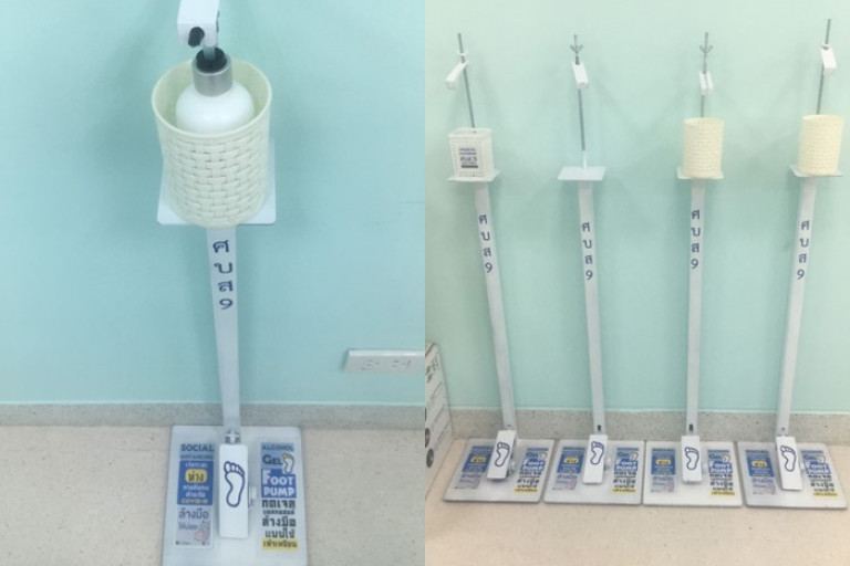 มีทั้งแบบใช้เซนเซอร์ และใช้เท้ากดเหยียบ ประดิษฐ์โดยศูนย์สนับสนุนบริการสุขภาพที่ 9 วัสดุหาง่ายต้นทุนไม่แพง ปลอดภัย เคลื่อนย้ายสะดวก พร้อมมีแบบให้ดาวน์โหลดได้