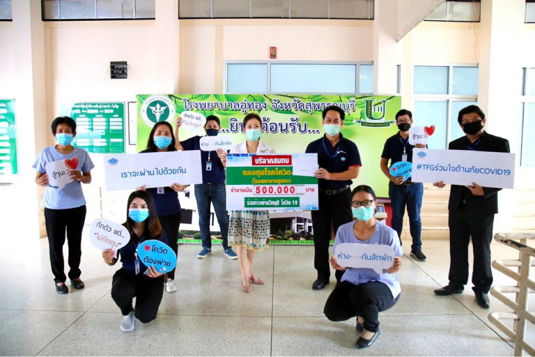 บริษัท ไทยฟู้ดส์ กรุ๊ป จำกัด (มหาชน) (TFG) และบริษัทในเครือ นำโดย พิเชษฐ์ มงคลศิริวัฒนา ผู้ช่วยประธานกลุ่มธุรกิจอาหารสัตว์ ภัทรพงศ์ เหมือนแก้ว ผู้จัดการฝ่ายโรงงานอาหารสัตว์ พร้อมทีมงาน เป็นตัวแทนมอบเงินบริจาค จำนวน 500,000 บาท พร้อมผลิตภัณฑ์ของบริษัท ให้กับ“โรงพยาบาลอู่ทอง จังหวัดสุพรรณบุรี” เพื่อร่วมเป็นส่วนหนึ่งในการสนับสนุนการต่อสู้กับโรคโควิด-19 ให้กับบุคลากรทางการแพทย์ โรงพยาบาล ตลอดจนชุมชนรอบข้างโรงงาน,ฟาร์ม ให้ก้าวข้ามผ่านเหตุการณ์ครั้งนี้ไปด้วยกัน โดยมี พญ.สนันทา จินดารัตน์ รองผู้อำนวยการเป็นผู้รับมอบ