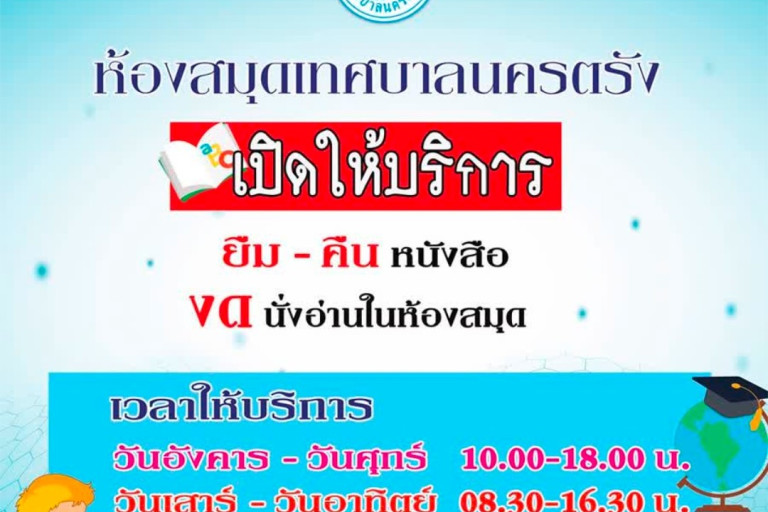 ห้องสมุดเทศบาลนครตรัง เปิดให้บริการยืม-คืน หนังสือ งดนั่งอ่านในห้องสมุด พร้อมเข้มงวดมาตรการป้องกันและควบคุมการแพร่ระบาดของโรคติดต่ออันตรายในท้องที่จังหวัดตรัง