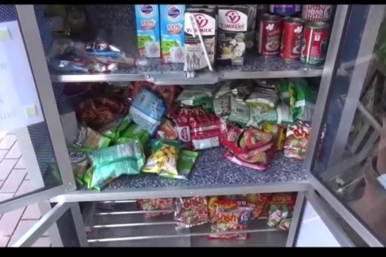 สาวเชียงใหม่นำตู้กับข้าวโดเรม่อน มาวางไว้ริมถนนห้วยแก้วหน้าร้านป้าพอลล่าอาหารตามสั่ง เซ็นเตอร์พอยท์ ถนนห้วยแก้ว เชียงใหม่ แบ่งปันให้ประชาชนที่เดือดร้อน วันที่ 10 พค.2563 ผู้สื่อข่าวรายงานว่า สาวเชียงใหม่นำตู้กับข้าวโดเรม่อน มาวางไว้ริมถนนห้วยแก้วหน้าร้านป้าพอลล่าอาหารตามสั่ง เซ็นเตอร์พอยท์ ถนนห้วยแก้ว เชียงใหม่ แบ่งปั้นให้ประชาชนที่เดือดร้อน มาหยิบอาหาร ไปรับประทานแต่พอดี มีทั้ง ข้าวสาร อาหารแห้ง น้ำดื่ม ผัดสด ไข่ไก่ มาม่า หน้ากาก เจลล้างมือ เพื่อช่วยเหลือ กันในยามยาก ขณะเดียวกัน ก็มีประชาชน นำอาหารแห้ง มาร่วมสมทบใส่ในตู้กับข้าวช่วยเหลือเติมให้ตลอด นางสาว ณัฎฐ์วรัชญ์ ใจมูล สาวเชียงใหม่ ร่วมกับเพื่อน ซื้อตู้กับข้าวพร้อมข้าวสาร อาหารแห้ง น้ำปลา ปลากระป๋อง มาม่า น้ำดื่ม ขนม แปรงฟัน หน้ากากอนามัย และสารพัดอาหารแห้ง ข้าวสาร ผักสด เหมือนตู้กับข้าว โดเรม่อน ที่มีสารพัด นำมาวางบริเวณ หน้าร้านป้าพอลล่า อาหารตามสั่ง เซ็นเตอร์พอยท์ ย่านถนนห้วยแก้ว ก่อนถึงปั้มน้ำมันเชลล์ ในตัวเมืองเชียงใหม่ เพื่อให้ประชาชน ที่เดือดร้อน หรือได้รับผลระทบ จากโควิค หรือชาวบ้าน ที่ตกงาน ทยอยพากัน มาหยิบอาหารในตู้ แต่ก็มีการจัดระเบียบ ให้ยืนเว้นระยะ หรือรอจังหวะไปหยิบ และขอให้หยิบไปพอดี เพื่อที่จะได้ให้ กับคนอื่นที่มาทีหลัง โดยจะเปิดตู้กับข้าว จนถึง 2 ทุ่ม ขณะเดียวกัน ก็มีชาวต่างชาติ ซื้ออาหารแห้ง อาหารกระป๋อง มาร่วมสมทบ ช่วยเหลือด้วย นอกจากนั้น ยังมีชาวเชียงใหม่ ที่มีน้ำใจ ที่ทราบว่า มีตู้กับข้าว พากันนำข้าวสาร อาหารกระป๋อง ไข่ไก่ มาสมทบตลอด ซึ่งเป็นเรื่องที่น่ายินดี ที่ยังมีคนมีน้ำใจ แต่ก็จะมีเจ้าหน้าที่คอยดูแล เพื่อไม่ให้มีใครมาหยิบฉวยไปทั้งตู้ แต่เชื่อว่าคนเชียงใหม่ มีน้ำใจในการแบ่งปั้นอยู่แล้ว โดยจะทำจนกว่าสถานการณ์โควิคจะคลี่คลาย.
