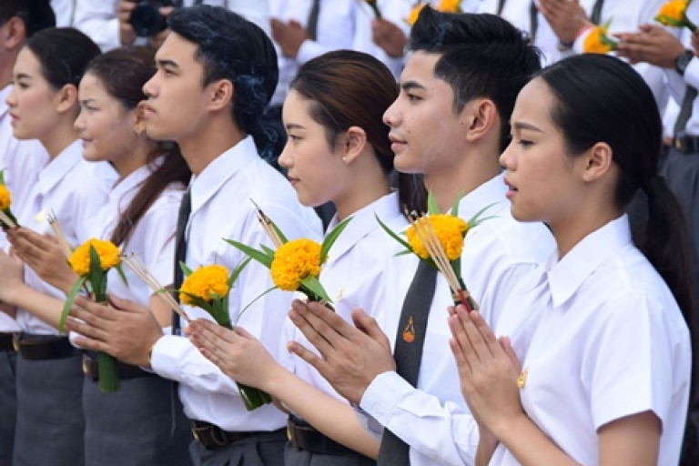 ม.สุรนารี นำน้องใหม่กว่า 3,700 คน กราบสักการะอนุสาวรีย์ท้าวสุรนารี ฝากตัวเป็นลูกหลานย่าโมและชาวโคราช พร้อมลอดประตูชุมพลเข้าสู่เมืองโคราช ตามประเพณีปฏิบัติอย่างพร้อมเพรียง ณ ลานอนุสาวรีย์ท้าวสุรนารี จ.นครราชสีมา