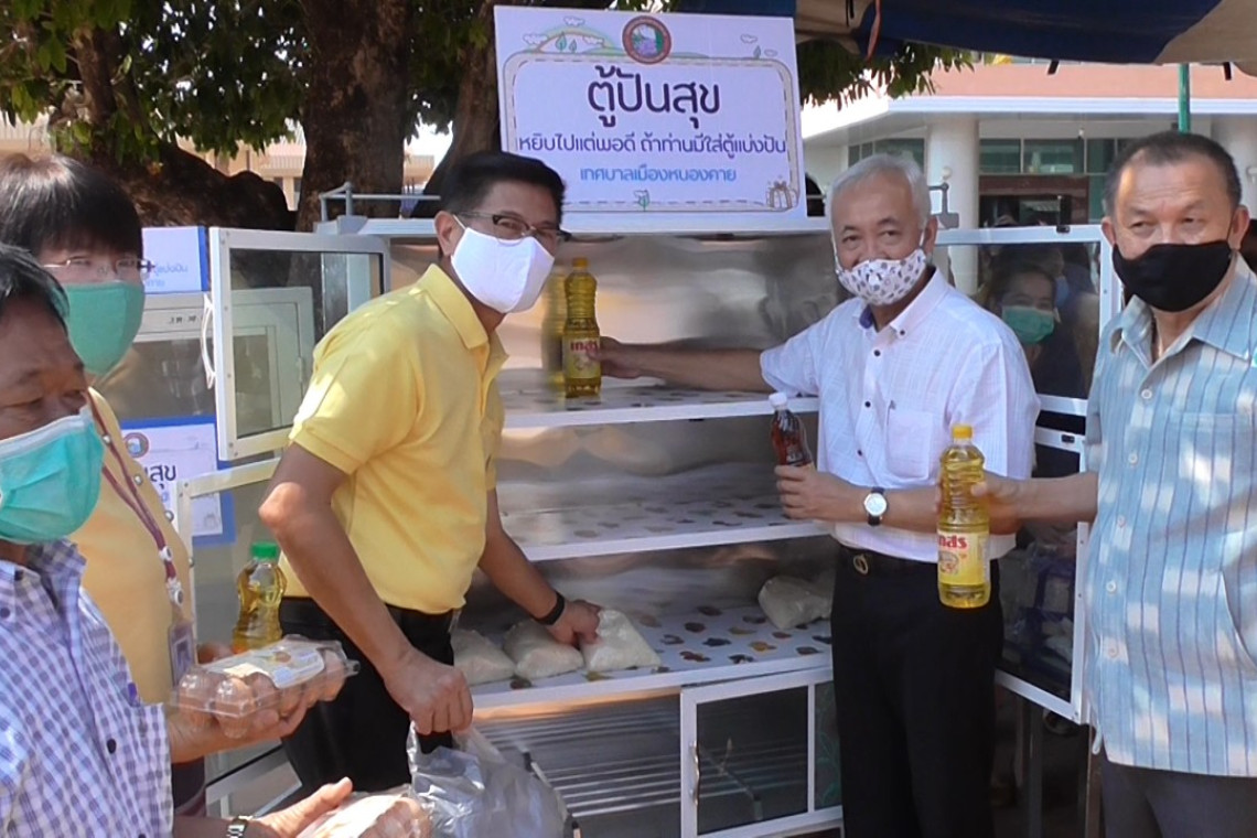 นายวีระชัยโชค มงคลภูมิรัตน์ รองนายกเทศมนตรีเมืองหนองคาย กล่าวว่า เนื่องจากสถานการณ์โรคระบาดโควิด-19 ทำให้ประชาชนได้รับความเดือดร้อน มีภาระค่าใช้จ่าย แต่รายได้ไม่ค่อยจะมี จึงเห็นว่าตู้ปันสุขนี้จะช่วยลดภาระค่าใช้จ่ายในครัวเรือนให้กับประชาชนได้ ซึ่งขอความร่วมมือประชาชนที่มารับสิ่งของในตู้ปันสุข จำกัดจำนวนคนละ 3 รายการ เพื่อแบ่งให้คนอื่นได้มีความสุขไปด้วยกัน โดยมีเจ้าหน้าที่คอยดูแลจัดระเบียบไม่ให้มีความวุ่นวายแก่งแย่งสิ่งของ และจะจัดทำตู้ปันสุขเช่นนี้ทุกวัน จนกว่าสถานการณ์ของโรคจะดีขึ้น โดยนอกจากทางเทศบาลเมืองหนองคาย จะจัดหาสิ่งของมาใส่ตู้แล้ว ยังมีภาคเอกชนหลายรายให้การสนับสนุนนำอาหารแห้ง ไข่ไก่ บะหมี่สำเร็จรูป ปลากระป๋อง มาบริจาคให้ด้วย.