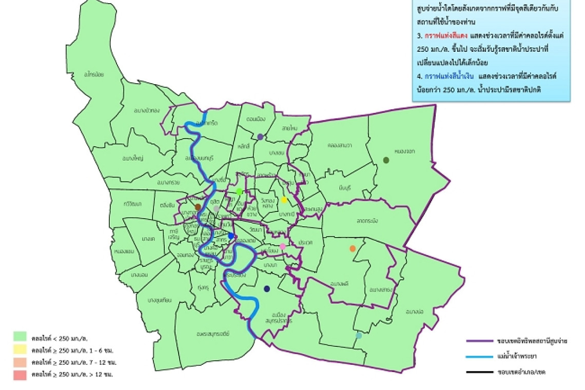 การประปานครหลวง (กปน.) รายงานภาพรวมน้ำประปาในพื้นที่กรุงเทพมหานคร นนทบุรี และสมุทรปราการ วันที่ 17 พ.ค.63  พบว่าน้ำประปารสชาติปกติตลอดวัน แนะสำรองไว้บริโภค โดยค่าคลอไรด์ ไม่เกิน 250 มิลลิกรัม/ลิตร ค่าความนำไฟฟ้า น้อยกว่า 1,200 ไมโครซีเมนต์/เซนติเมตร ไม่ส่งผลต่อการรับรู้รสชาติ