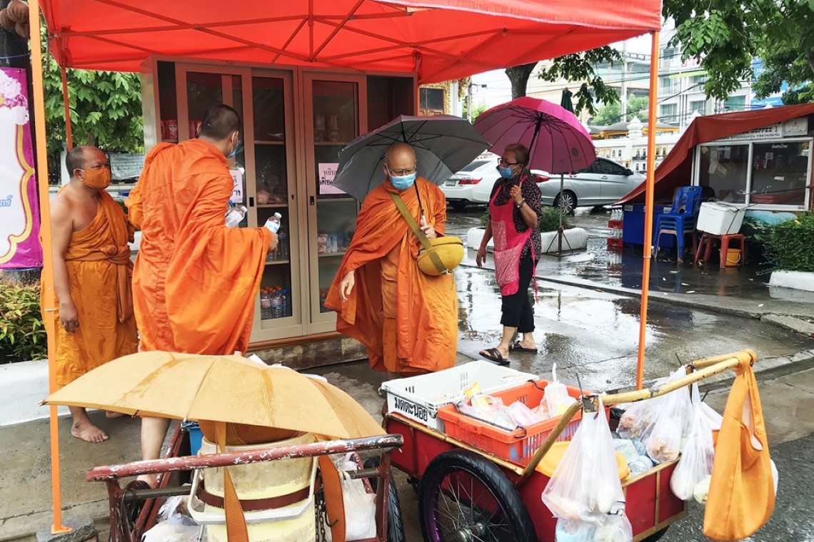 เมื่อเวลา 07.30 น. วันที่ 18 พ.ค.63 ผู้สื่อข่าวได้เดินทางไปที่วัดสายไหม ต.คูคต อ.ลำลูกกา จ.ปทุมธานี หลังได้รับแจ้งจากชาวบ้านว่า พระสงฆ์ของวัดบิณฑบาตรกลับเข้ามาวัดได้นำอาหารแห้งที่รับบิณฑบาตรจากญาติโยมตอนเช้า มาร่วมใส่ไว้ในตู้ปันสุขที่ตั้งไว้บริเวณลานจอดรถหน้าวัด โดยพบว่าหลังจากที่พระสงฆ์ภายในวัดกลับจากบิณฑบาตร ก็จะตรงมาที่ตู้ปันสุขก่อน และเลือกนำอาหารแห้ง และอาหารปรุงสำเร็จแล้ว แบ่งใส่ไว้ในตู้ปันสุขไว้ให้สำหรับผู้ที่เดือดร้อนนำไปใช้และนำไปกินได้ เป็นการแบ่งปันความสุข ช่วยเหลือผู้ที่ยากไร้ และยังเป็นบุญกุลศลอีกทอดกับคนที่ใส่บาตรกับพระแล้วยังได้บุญในการช่วยเหลือแบ่งปันผู้อื่นที่เดือดร้อนอีกด้วย ซึ่งที่บริเวณข้างตู้จะเขียนป้ายขนาดใหญ่ไว้ว่า ตู้ปันความสุข “ททมาโน ปิโยโหติ การให้ส่งดี ๆ แก่กันในยามวิกฤติ เป็นพลังงานความโชคดีบางอย่าง ทั้งผู้ให้และผู้รับ ให้อย่างมีสติ เป็นสุข หยิบอย่างขาดสติ เป็นทุกข์” และที่ประตูหน้าตู้ปันสุขเขียนไว้ว่า “หยิบแต่พอดี เผื่อแผ่ผู้อื่นบ้าง” สร้างความประทับใจแก่ญาติโยมที่พบเห็น และคนที่ใส่บาตรได้รู้สึกถึงบุญกุศลอีกต่อที่ได้ช่วยเพื่อนมนุษย์คนไทยที่ได้รับความเดือดร้อนอยู่ในขณะนี้ โดยผู้ที่ได้รับความเดือดร้อนจากสถานการณ์โควิด สามารถเข้ามาหยิบไปนำไปใช้ได้ตลอดเวลา พร้อมทั้งฝากประชาสัมพันธ์ผู้ใดที่พบเห็นว่าผู้อื่นเดือดร้อนขอให้บอกเพื่อเป็นบุญให้สามารถเข้ามาที่วัดสายไหมได้