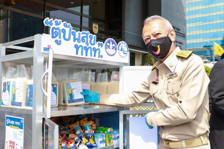 สำหรับ ตู้ปันสุข ททท. เป็นการดำเนินนโยบายเพื่อสังคม (CSR) ขององค์กร โดยเปิดให้บุคลากรใน ททท. และบุคคลทั่วไป ได้แสดงถึงน้ำใจในการแบ่งปันให้ผู้ที่ต้องการความช่วยเหลือเพื่อบรรเทาความเดือนร้อนจากสถานการณ์โควิด-19 โดยเน้นที่อาหารแห้งหรือเครื่องดื่ม ซึ่งในวันแรกของการให้บริการของตู้ปันสุข ททท. นี้ ได้รับเกียรติจากนายพิพัฒน์ รัชกิจประการ รัฐมนตรีว่าการกระทรวงการท่องเที่ยวและกีฬา เป็นผู้นำของมาใส่ในตู้เป็นคนแรก นอกจากนี้ได้มอบเงาะที่ ททท. ได้จัดซื้อมาจากชาวสวนจังหวัดระยองปริมาณ 1 ตัน โดยแบ่งเป็นถุง ถุงละ 2 กิโลกรัม เพื่อมอบแก่สมาชิกที่อาศัยอยู่ในชุมชนที่อยู่ใกล้เคียง ททท. 4 ชุมชน ได้แก่ ชุมชนโรงเจ ชุมชนหลังวัดมักกะสัน ชุมชนริมทางรถไฟ และชุมชนนิคมมักกะสัน เป็นการปันความสุขให้ทั้งคนในชุมชนโดยรอบ ททท. และปันสุขให้ชาวสวนอีกด้วย