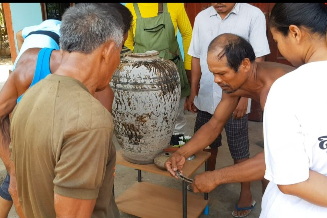 วันนี้(18 พ.ค.63) บ้านนารุ่ง ต.นารุ่ง อ.ศีขรภูมิ จ.สุรินทร์ ชาวเล่าลือกันว่ามีคนขุดพบไหโบราณ ใบใหญ่ รูปร่างสวยงาม ฝังอยู่ใต้ดินในแปลงนา และพากันขุดมาเก็บรักษาไว้ที่บ้าน ชาวบ้านทราบข่าวพากันแห่ดูทั้งวัน พบเป็นไหขนาดใบใหญ่มีสภาพสมบูรณ์ดี มี 4 หู อายุน่าจะหลายร้อยปี ชาวบ้านรู้ข่าวต่างก็พากันมาดูไม่ขาดสายพร้อมทั้งกราบไหว้ขอโชคขอลาภบางคนก็เอาโทรศัพท์ถ่ายส่งให้กับเพื่อนๆดู