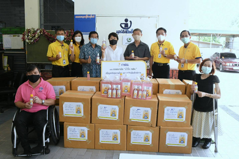 การไฟฟ้าฝ่ายผลิตแห่งประเทศไทย (กฟผ.) ดยสุทธิชัย จูประเสริฐพร รองผู้ว่าการบริหาร กฟผ. เป็นผู้แทน มอบเจลอนามัย “น้ำใจ” กฟผ. ขนาด 180 มิลลิลิตร จำนวน 3,000 ขวด ขนาด 450 มิลลิลิตร จำนวน 10 ขวด และขนาด 5 ลิตร จำนวน 5 แกลลอนให้กับ นพ.ประพจน์ เภตรากาศ ประธานมูลนิธิเพื่อเด็กพิการ รสนา โตสิตระกูล กรรมการมูลนิธิสุขภาพไทย เพื่อร่วมเป็นส่วนหนึ่งที่ช่วยเหลือผู้พิการและผู้ดูแล ในการป้องกันการแพร่ระบาดและลดความเสี่ยงจากการติดเชื้อ COVID-19 ณ มูลนิธิเพื่อเด็กพิการ กรุงเทพฯ