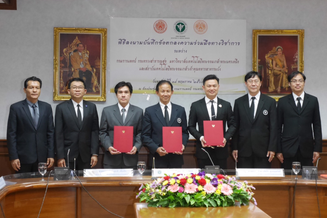 สถาบันมะเร็งแห่งชาติ กรมการแพทย์ ลงนามบันทึกข้อตกลงความร่วมมือกับมหาวิทยาลัยเทคโนโลยีพระจอมเกล้าพระนครเหนือ และสถาบันเทคโนโลยีพระจอมเกล้าเจ้าคุณทหารลาดกระบัง พัฒนานวัตกรรมทางการแพทย์ด้านโรคมะเร็งแบบไตรภาคี