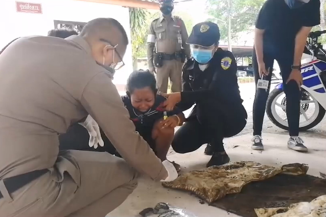 โดยตำรวจได้เชิญตัวนางสาวกุ้ง ภรรยา มาสอบสวนและยืนยันว่าเป็นศพของสามีทั้งจากหลักฐานที่พบในที่เกิดเหตุทั้งสร้อยคอนาฬิกาและชุดที่สวมใส่และทันที นางกุ้ง เห็นสิ่งของเครื่องใช้ของสามีถึงกับร่ำให้และเป็นลมล้มฟุบทันทีทำใจรับไม่ได้หน่วยกู้ภัยต้องช่วยกันปฐมพยาบาล