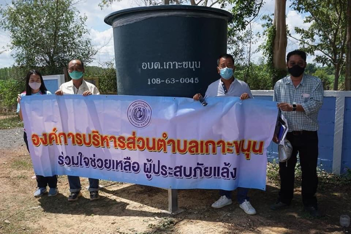 อบต.เกาะขนุน เร่งแจกน้ำช่วยภัยแล้ง ตั้งถังน้ำ 6 จุดในพื้นที่บ้านห้วยพลู หลังแหล่งน้ำต้นทุน ที่ใช้สำหรับผลิตน้ำประปาแห้งขอด