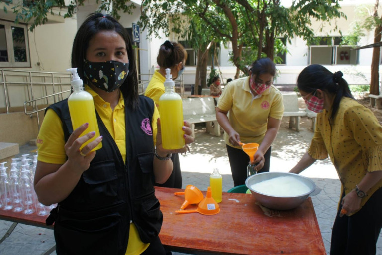 เมื่อเวลา 10.00 น. วันที่ 1 มิถุนายน 2563 ที่ลานอเนกประสงค์หน้าสำนักงานพัฒนาสังคมและความมั่นคงของมนุษย์จังหวัดยโสธร (ศาลากลางจังหวัดยโสธรหลังเก่า) นางวาสนา ทองจันทร์ พัฒนาสังคมและความมั่นคงของมนุษย์จังหวัดยโสธร ได้นำเจ้าหน้าที่ พม.ยโสธรทำการฝึกอบรมการทำน้ำยาล้างจาน เพื่อที่จะนำไปขยายผลให้กับผู้พิการ ผู้ด้อยโอกาส ผู้สูงอายุภายในจังหวัดยโสธร เพื่อที่จะได้ทำเองได้และเพื่อเป็นการลดค่าใช้จ่ายในครัวเรือน อีกทั้งเป็นการฝึกอาชีพผลิตเพื่อจำหน่ายสร้างรายได้ให้กับผู้พิการ ผู้สูงอายุ ผู้ด้อยโอกาสให้มีรายได้ เพิ่มอีกช่องทางหนึ่ง ซึ่งเป็นการช่วยเหลือ ผู้พิการ ผู้ด้อยโอกาส ผู้สูงอายุที่ได้รับผลกระทบจากการแพร่ระบาดของเชื้อไวรัสโคโรน่า 2019 (โควิด-19)เพื่อที่จะก้าวพ้นวิกฤตในครั้งนี้ไปด้วยกัน