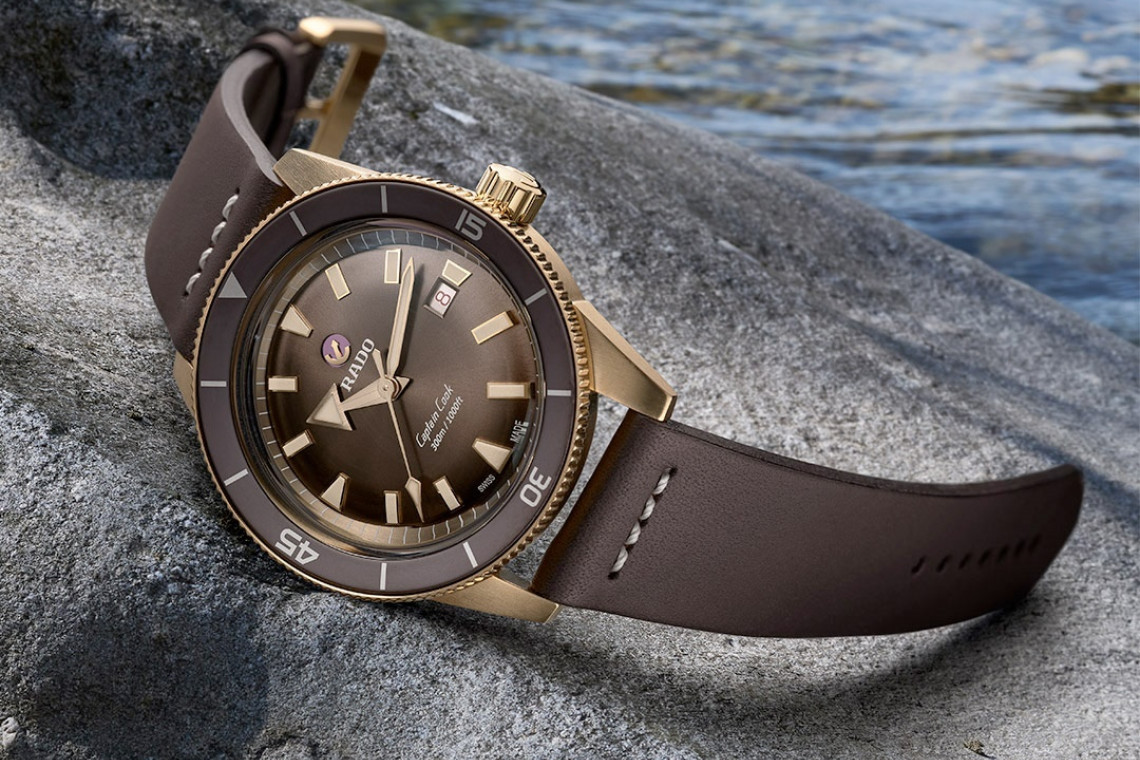 จุดเด่นอันน่าประทับใจของ Captain Cook Bronze อยู่ที่การนำโทนสีของหน้าปัดและขอบตัวเรือนทั้งสีเขียว สีน้ำเงินและสีน้ำตาล มาผสานกับสีของบรอนซ์ที่ผลิตด้วยเทคนิคเฉพาะของ RADO ซึ่งเป็นสีที่มีความเป็นธรรมชาติ และช่วมเสริมความ 'โดดเด่น’ ให้ซึ่งกันและกัน ถือเป็นความสำเร็จแห่งการผสมผสานวัสดุอย่างแท้จริงโดยได้รับการออกแบบมาเพื่อให้ยืนหยัดได้แม้ภายใต้การทดสอบของกาลเวลา