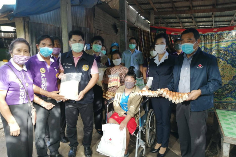 โควิด-19 กาญจนบุรี แม้ผู้ป่วยเป็นศูนย์ แต่ "พ่อเมือง" กับนายกเหล่ากาชาด สโมสรโรตารี่ ไม่หยุดนิ่งนำสิ่งของ 3,000 ชุด ช่วยเหลือคนชรา พิการ ป่วยติดเตียงฐานะยากจน ตามโครงการ "เราห่วงใย ไม่ทิ้งกัน" จัดขึ้นโดยสโมสรโรตารี่ พื้นที่ 28 ภาค 3330 เพื่อช่วยเหลือบรรเทาความเดือดร้อนแก่ผู้ที่ไม่สามารถช่วยเหลือตัวเองได้ ตามบัญชีรายชื่อในพื้นที่ตำบลท่าล้อ อ.ท่าม่วงฯ เพื่อเป็นการลดค่าใช้จ่ายในเรื่องชีวิตความเป็นอยู่ โดยเฉพาะเรื่องปากท้องในยามที่ได้รับความเดือดร้อนจากการแพร่ระบาดโรคติดเชื้อโควิด-19 แม้สถานการณ์จะคลี่คลายไปในทางที่ดีก็ตาม แต่หน่วยงานรัฐ โดยเฉพาะผู้ว่าราชการจังหวัดกาญจนบุรี รวมทั้งนายกเหล่ากาชาดฯ รวมทั้งภาคเอกชน ก็ยังเป็นห่วงเป็นใยในชีวิตความเป็นอยู่ของพี่น้องประชาชนเหมือนเดิม เดินสายมอบสิ่งของตลอดทั้งวัน