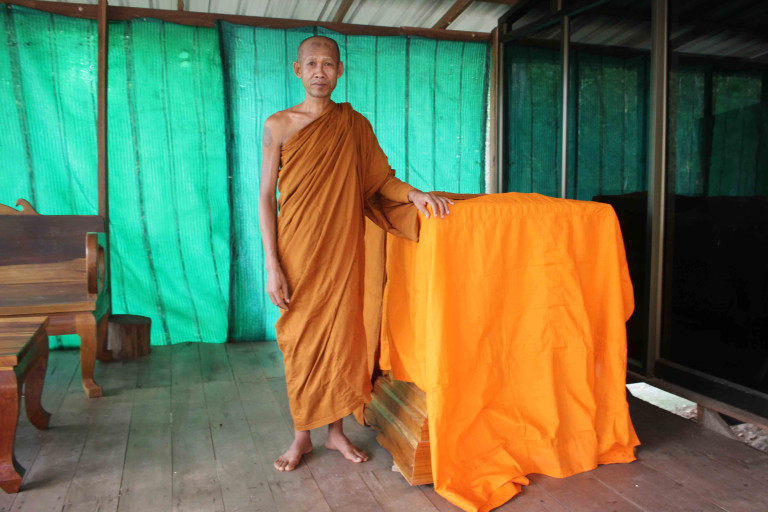 ทั้งนี้ ผู้สื่อข่าวได้พบพระอาคม จนฺทาคโม อายุ 56 ปี เจ้าอาวาสวัดป่าธรรมสถิตย์ ซึ่งเก็บรักษาโลงศพไว้บนศาลารับรอง ใช้ผ้าจีวรคลุมไว้เพื่อป้องกันฝุ่นละออง ทั้งนี้ พระอาคมได้ยืนยันว่า เป็นเรื่องจริง ที่ตนเข้าไปนั่งวิปัสสนากรรมฐานและจำวัดภายโลงศพไม้สักทองดังกล่าว ซึ่งจะปฏิบัติในคืนวันพระหรือเดือนละ 4 คืนเท่านั้น ส่วนคืนวันที่เหลือก็จำวัดบนกุฎิตามปกติ
