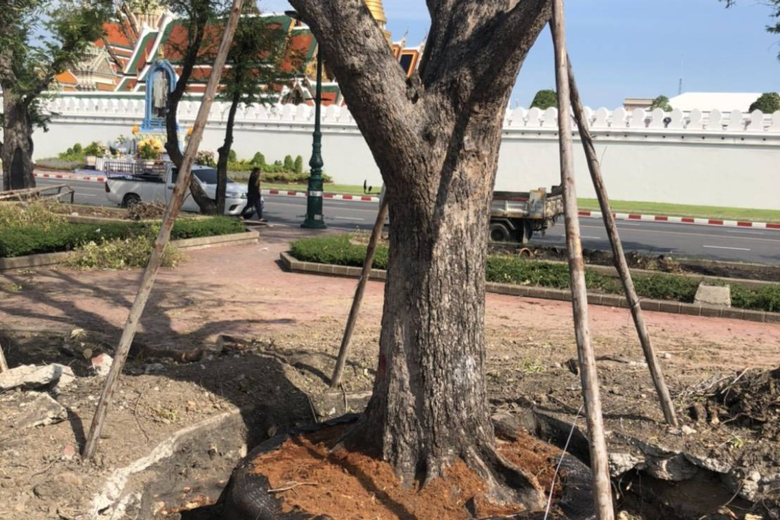 ด้านนายสุรเดช อำนวยสาร ผู้อำนวยการเขตพระนคร กทม. กล่าวว่า การล้อมย้ายต้นไม้บริเวณแนวก่อสร้างโครงการอุโมงค์ทางเดินลอดถนนหน้าพระลานและถนนมหาราช มีต้นไม้ที่ล้อมย้าย ประกอบด้วย ต้นลีลาวดี 29 ต้น และต้นปีป 5 ต้น ทั้งนี้ ต้นลีลาวดีเป็นต้นไม้ที่สามารถล้อมย้ายและนำไปปลูกโดยไม่ต้องอนุบาล จะนำไปปลูกที่สวนสมเด็จพระปกเกล้าบริเวณเชิงสะพานพระปกเกล้า ทั้ง 29 ต้น ปัจจุบันมีสภาพสมบูรณ์ สวยงาม ส่วนต้นปีป เป็นไม้มีแก่น ต้องใช้เวลาในการอนุบาล ซึ่งหลังการล้อมย้ายได้นำไปพักไว้ในพื้นที่กองทัพเรือ