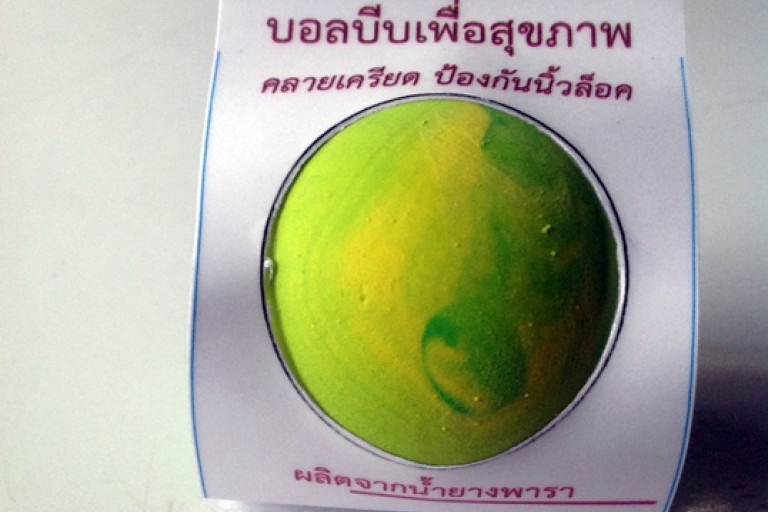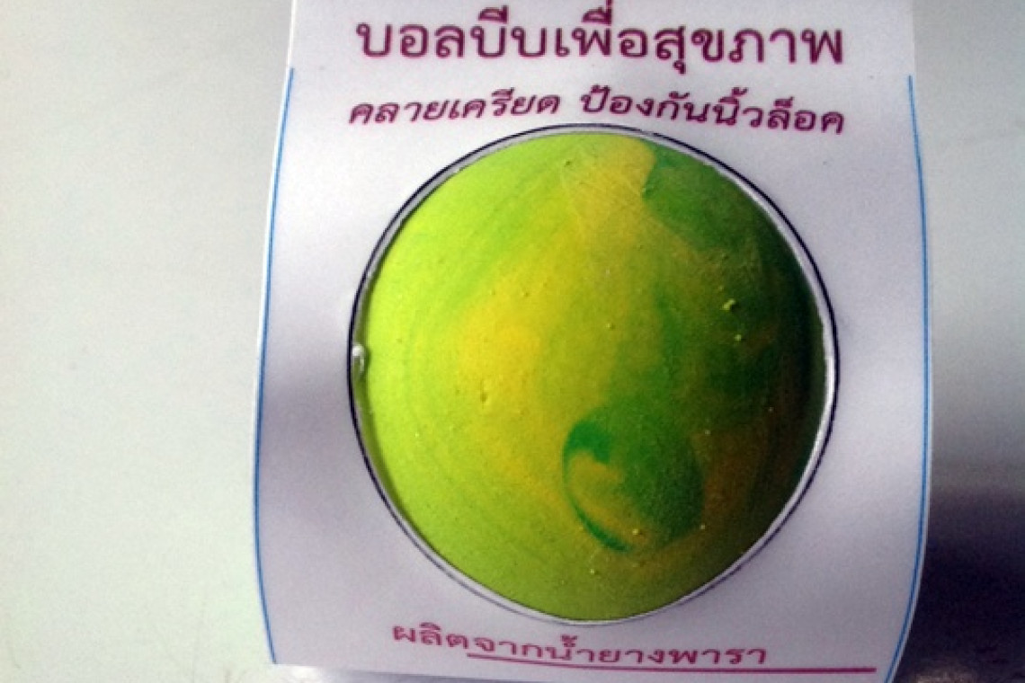อาจารย์อนุชิต วิเชียรชม สาขาเทคโนโลยียางและพอลิเมอร์ คณะวิทยาศาสตร์และเทคโนโลยี มหาวิทยาลัยเทคโนโลยีราชมงคลศรีวิชัย วิทยาเขตนครศรีธรรมราช ไสใหญ่ มีแนวคิดสร้างสรรค์ผลิต "บอลบีบมือเพื่อสุขภาพ" จากยางพารา สีสันสวยงามและมีกลิ่นหอม ช่วยผ่อนคลายขณะใช้งาน ที่สำคัญคือต้นทุนการผลิตที่ต่ำกว่ายางสังเคราะห์ แต่ช่วยเพิ่มมูลค่ายางพาราแก่ชาวสวนยางได้