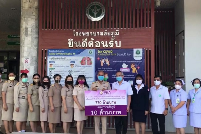 ด้าน นายมนตรี ผิวสุข ผู้จัดการการไฟฟ้าส่วนภูมิภาคจังหวัดชัยภูมิ กล่าวว่า สำหรับโครงการ PEA สนับสนุนคุรุภัณฑ์ทางการแพทย์โรงพยาบาลจังหวัด 77 แห่งเฉลิมพระเกียรติเนื่องในโอกาสมหามงคลพระราชพิธีบรมราชาภิเษก โดย PEA งบประมาณเพื่อจัดซื้อครุภัณฑ์ทางการแพทย์ให้กับโรงพยาบาลจังหวัดจำนวน 77แห่งๆ ละ 10 ล้านบาทรวมทั้งสิ้น 770 ล้านบาทแบ่งการสนับสนุนงบประมาณเป็น 2 ช่วงคือปี 2562 จำนวน 30 แห่ง เป็นจำนวนเงิน 300 ล้านบาทและปี 2563 จำนวน 47 แห่งเป็นเงิน 480 ล้านบาท โดยมีโรงพยาบาลที่อยู่ในพื้นที่ความรับผิดชอบของการไฟฟ้าส่วนภูมิภาคเขต 3 ภาคตะวันออกเฉียงเหนือจังหวัดนครราชสีมาจำนวน 4 แห่งได้แก่โรงพยาบาลมหาราชจังหวัดนครราชสีมาโรงพยาบาลสุรินทร์ โรงพยาบาลบุรีรัมย์ โรงพยาบาลชัยภูมิซึ่งมีกำหนดมอบงบประมาณในวันนี้
