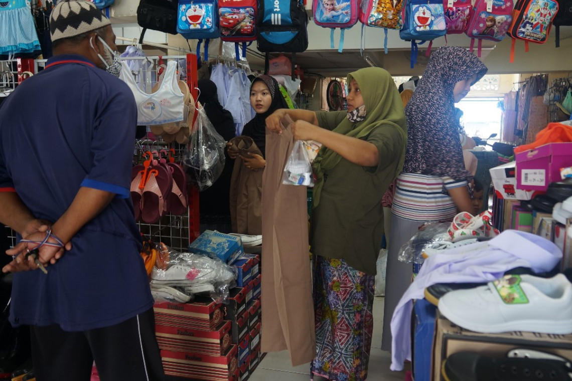 ที่ร้านคุงคิ้วพานิชจำหน่ายชุดนักเรียนในเขตเทศบาลตำบลปะลุรู อำเภอสุไหงปาดี จังหวัดนราธิวาส บรรดาผู้ปกครองต่างพาบุตรหลานไปเลือกซื้อชุดนักเรียนเตรียมตัวรับเปิดภาคเรียน ปีการศึกษา 2563 กันอย่างคึกคักซึ่งมีนักเรียนทุกระดับชั้น ตั้งแต่อนุบาล ชั้นประถม และมัธยมศึกษา ส่วนใหญ่จะซื้อชุดนักเรียน รองเท้า และปักชื่อพร้อมด้วย