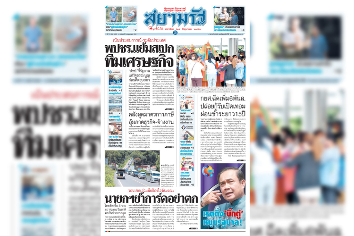 หน้า 1 หนังสือพิมพ์สยามรัฐรายวัน ฉบับวันอังคารที่ 7 ก.ค.พ.ศ.2563