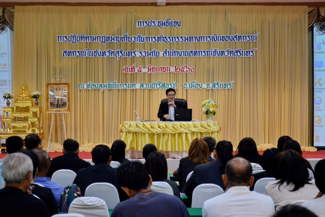 วันนี้ (5 มิ.ย.60) สำนักงานสหกรณ์จังหวัดสุรินทร์ ร่วมกับสำนักงานป้องกันและปราบปรามการฟอกเงิน จัดประชุมชี้แจงการปฏิบัติตามกฎหมายเกี่ยวกับการทำธุรกรรมทางการเงินของสหกรณ์ ให้กับสหกรณ์ในจังหวัดสุรินทร์ ณ ห้องลุมพินีแกรนด์ สวนป่ารีสอร์ท อำเภอเมือง จังหวัดสุรินทร์