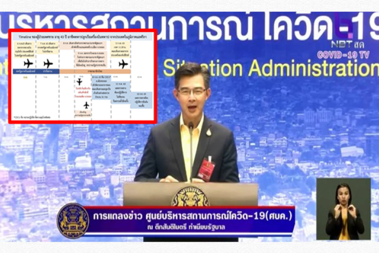 วันที่ 13 ก.ค. ที่ทำเนียบรัฐบาล นพ.ทวีศิลป์ วิษณุโยธิน โฆษกกระทรวงสาธารณสุข ในฐานะโฆษกศูนย์บริหารสถานการณ์การแพร่ระบาดของโรคติดเชื้อไวรัสโคโรนา 2019 (โควิด-19) หรือ ศบค. เปิดเผยว่า เปิดเผยถึงไทม์ไลน์หนึ่งใน 3 ผู้ติดเชื้อรายใหม่ ซึ่งเป็น ทหารอิยิปต์ โดยเดินทางมาจากต่างประเทศ คัดกรอง ณ ด่านฯ และเข้าพัก State Quarantine พบว่าติดเชื้อโควิด-19 ดังนี้