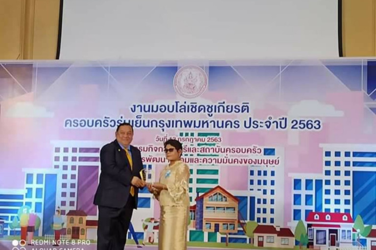วันพฤหัสบดีที่ 28 พ.ค.2563นายสุชีพ อารีประชาภิรมย์ ผู้อำนวยการเขตดอนเมือง แสดงความยินดีกับร้อยตรีเสรี - นางประจวบ นิลสังข์ ประธานชุมชนปิ่นเจริญ 2 เขตดอนเมือง ในโอกาสเข้ารับโล่เชิดชูเกียรติครอบครัวร่มเย็น กรุงเทพมหานครประจําปี 2563 จากนายจุติ ไกรฤกษ์ รัฐมนตรีว่าการกระทรวงการพัฒนาสังคมและความมั่นคงของมนุษย์ ซึ่งได้ดำเนินการคัดเลือกโดยกรมกิจการสตรีและสถาบันครอบครัว กระทรวงการพัฒนาสังคม และความมั่นคงของมนุษย์ โดยได้คัดเลือกครอบครัวที่สมาชิกในครอบครัวอยู่ร่วมกันอย่างร่มเย็นเป็นสุข เป็นตัวอย่างที่ดีของสังคม