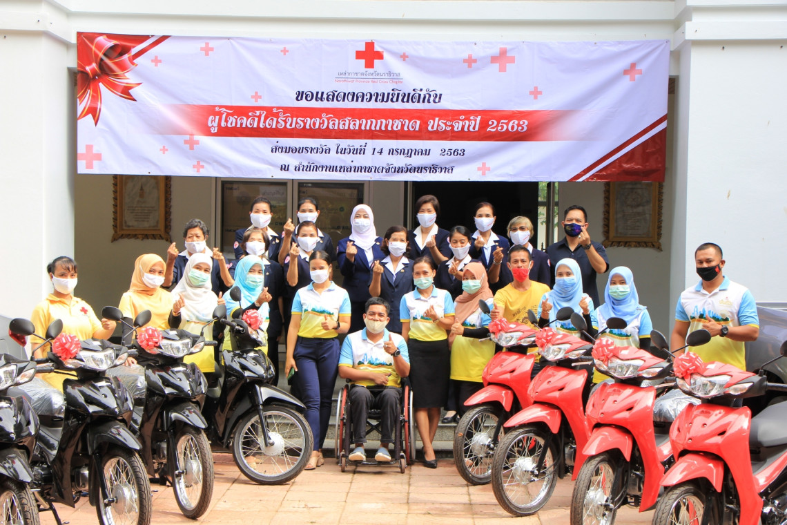 ทั้งนี้ สำนักงานเหล่ากาชาดจังหวัดนราธิวาสได้จัดทำสลากเพื่อจำหน่าย จำนวน 100,000 ฉบับๆละ 50 บาท และจัดให้มีการหมุนวงล้อออกรางวัลสลากกาชาดแล้ว เมื่อวันที่ 10 มิถุนายน 2563 โดยในปีนี้มีรายได้จากการจัดกิจกรรมดังกล่าวหลังหักค่าใช้จ่ายแล้ว เป็นเงินประมาณ 3,632,296 บาท ในวันนี้เหล่ากาชาดจังหวัดนราธิวาสได้จัดกิจกรรมมอบรางวัลแก่ผู้โชคดีที่ได้รับรางวัลสลากกาชาดประจำปี 2563 ประกอบด้วย รางวัลพิเศษรถเก๋งโตโยต้ายาริส ATIV 1.2 Entry จำนวน 1 รางวัล ซึ่งผู้โชคดี ได้แก่ นายดำรงค์ จันทร์แท้ , รางวัลที่ 1 รถกระบะ Toyota Hilux Revo Smart Cab 2.4 Plus Z - Edition จำนวน 1 รางวัล ผู้โชคดี ได้แก่ นายอับดุลนาเซ ยูโซ๊ะ นอกจากนี้ยังมีการมอบรางวัลรถจักรยานยนต์ Honda Wave 110 i จำนวน 8 รางวัลให้แก่ผู้โชคดีด้วย