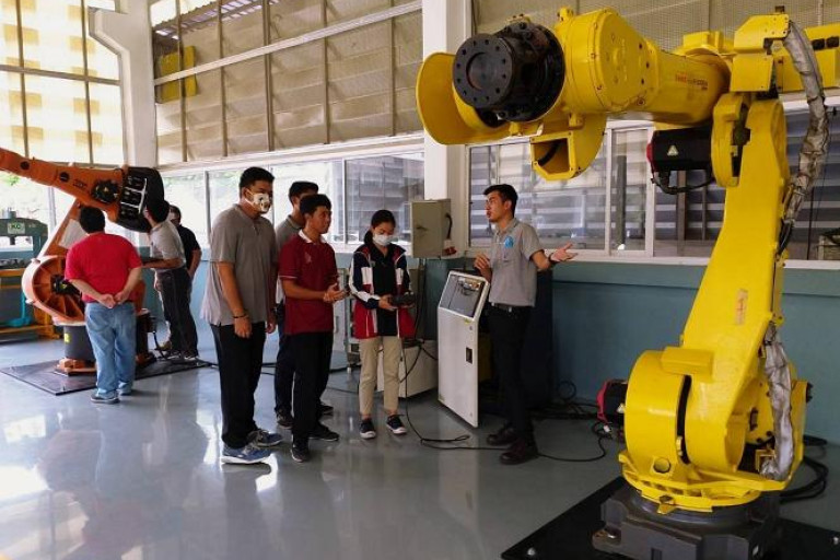 ดร.ปริญญ์ บุญกนิษฐ รองอธิการบดีฝ่ายพัฒนากิจการและภาคีความร่วมมือ พร้อม ดร.ณัฐวรพล รัชสิริวัชระบุล คณบดีคณะวิศวกรรมศาสตร์  มหาวิทยาลัยเทคโนโลยีราชมงคลพระนคร เป็นประธานเปิดโครงการอบรม “การสร้างบัณฑิตพันธุ์ใหม่และกำลังคนที่มีสมรรถนะเพื่อตอบโจทย์ภาคการผลิต วิศวกรรมระบบดิจิทัลและการซ่อมบำรุงหุ่นยนต์” ภายใต้ความร่วมมือระหว่างมหาวิทยาลัยเทคโนโลยีราชมงคลพระนคร กับ บริษัท อาซาฮี-ไทย อัลลอย จำกัด รุ่นที่ 1 ระหว่างวันที่ 13-17 ก.ค.63 โดยได้รับเกียรติจาก ดร.อรรณพ ปิยะสินธ์ชาติ จาก ataco academy ประนอม แย้มเดช และทีมงานบริษัท เอ็น.พี.โรโบติกส์ แอนด์ โซลูชั่น จำกัด ร่วมเป็นวิทยากรให้ความรู้การเขียนโปรแกรม การฝึกควบคุม การสั่งการ และซ่อมบำรุงแขนกลอุตสาหกรรม   ทั้งนี้ มีผู้ให้ความสนใจเข้าร่วมอบรมทั้งจากภาคการศึกษาและภาคอุตสาหกรรมจำนวนมาก เช่น บริษัทสยามโปรเพลท จำกัด, สถาบันเทคโนโลยีไทย-ญี่ปุ่น, บริษัทคอมบัสชั่น (ไทยแลนด์) จำกัด ฯลฯ  ณ ศูนย์ฝึกอบรมโครงการบัณฑิตพันธ์ุใหม่ ภายใต้ความร่วมมือ มทร พระนคร และ ATACO ACADEMY                            (บริษัท อาซาฮี-ไทย อัลลอย จำกัด)
